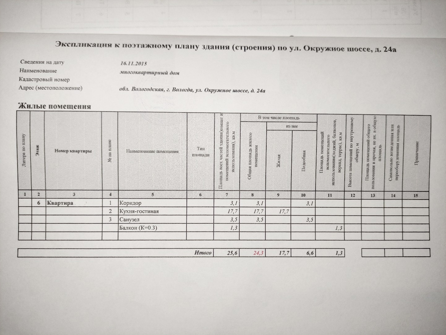 Общая площадь 24.3 м2