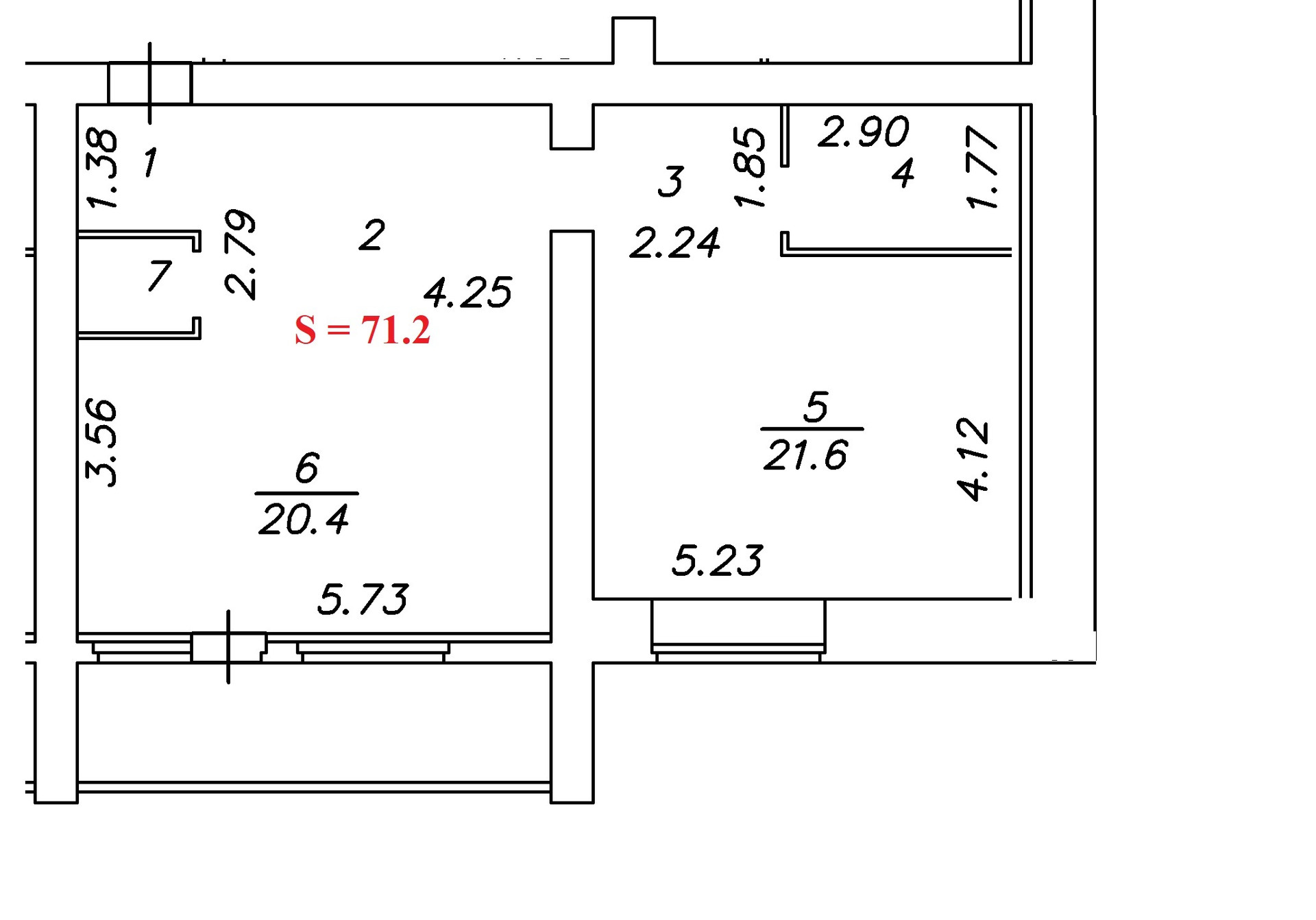 Общая площадь 70.6 м2