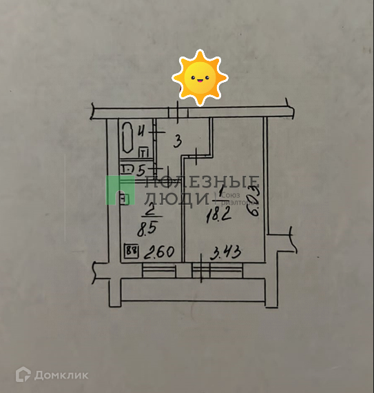 Жилая площадь 18.2 м2
