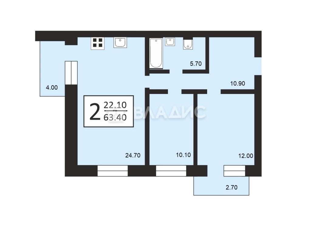 Общая площадь 63.3 м2