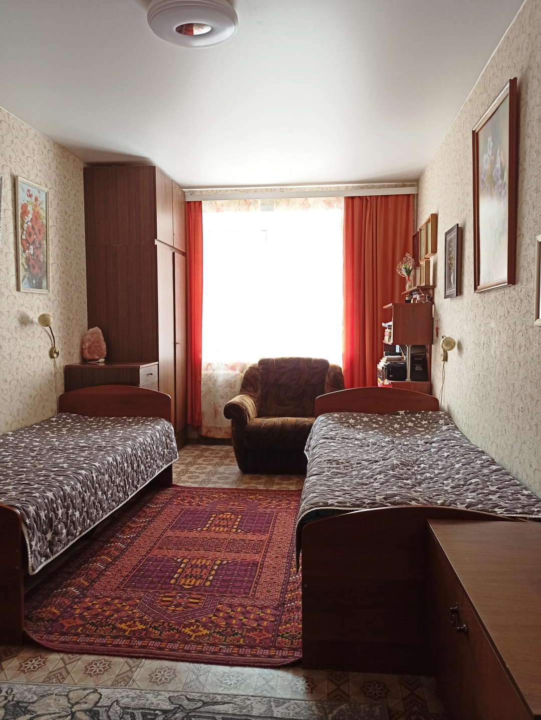 Квартира светлая, просторная, очень тёплая благодаря толстым кирпичным стенам, соседей не слышно. Окна обращены на южную сторону.