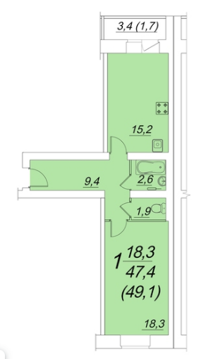 Общая площадь 49.1 м2