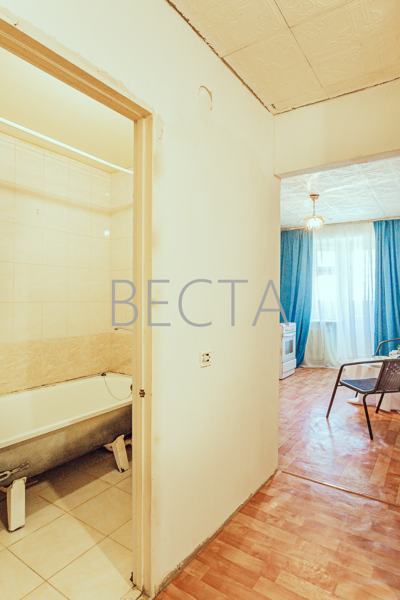 - квартира без ремонта: выполнена подготовка стен под чистовую отделку, стены уже оштукатурены финишной шпатлевкой, вам остается только поклеить свои обои, линолеум на полу уже лежит, в ванной на стенах и на полу кафельная плитка