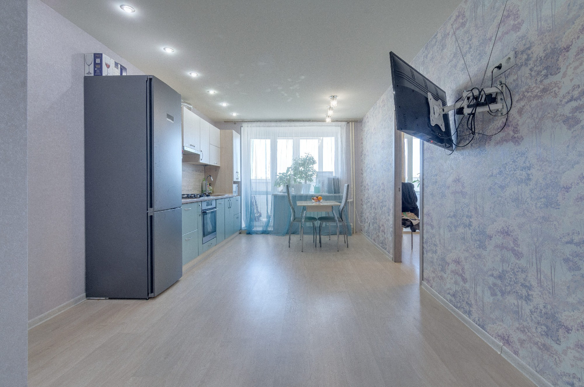 В квартире выполнен евро ремонт, раздельный санузел, большая ванная комната. Квартира очень светлая и теплая. Имеется утепленная лоджия 5,8 кв. м., застеклённая двухкамерными стеклопакетами. Из окон хороший вид.