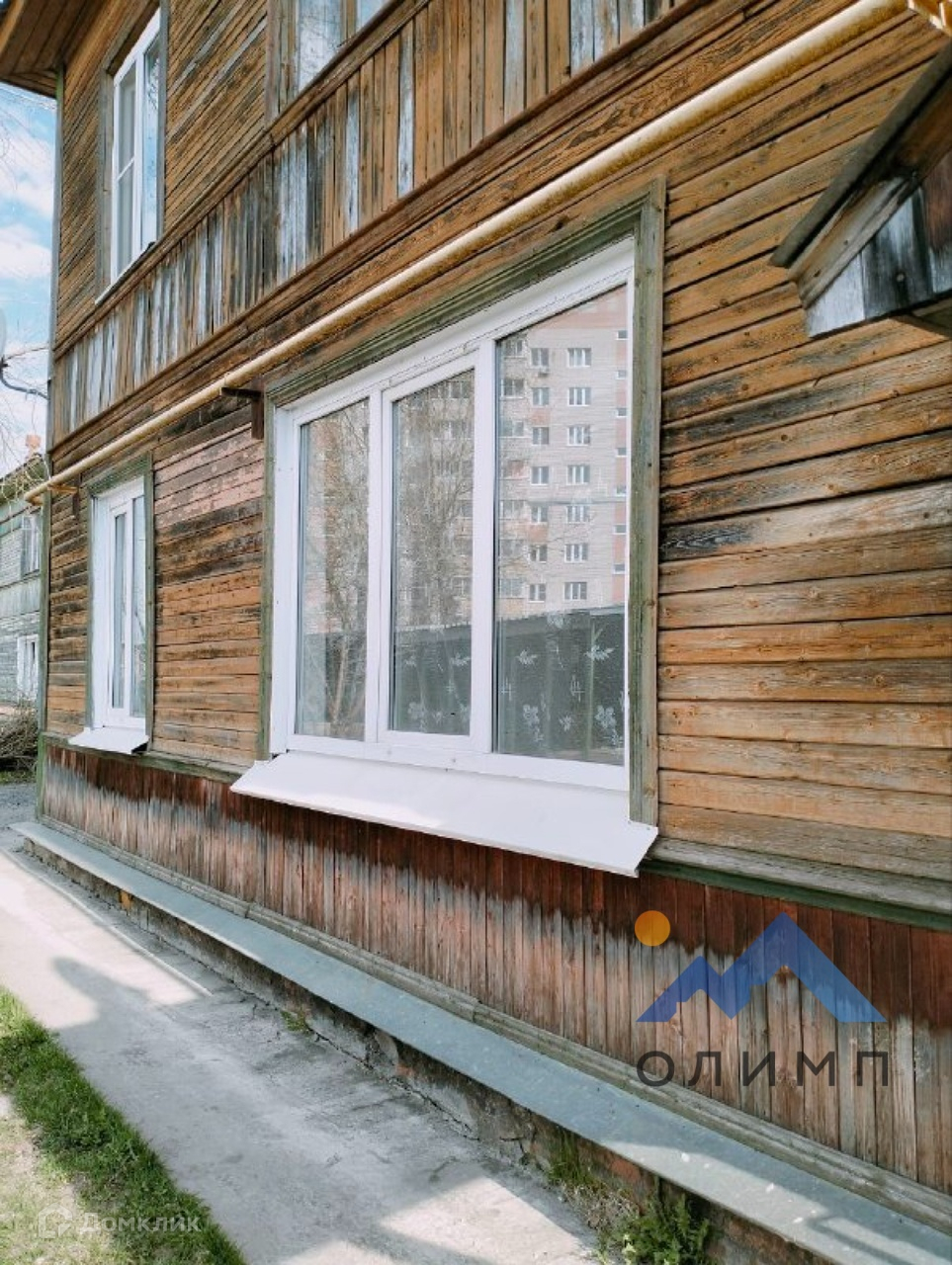 Квартира расположена на первом этаже двухэтажного деревянного дома.