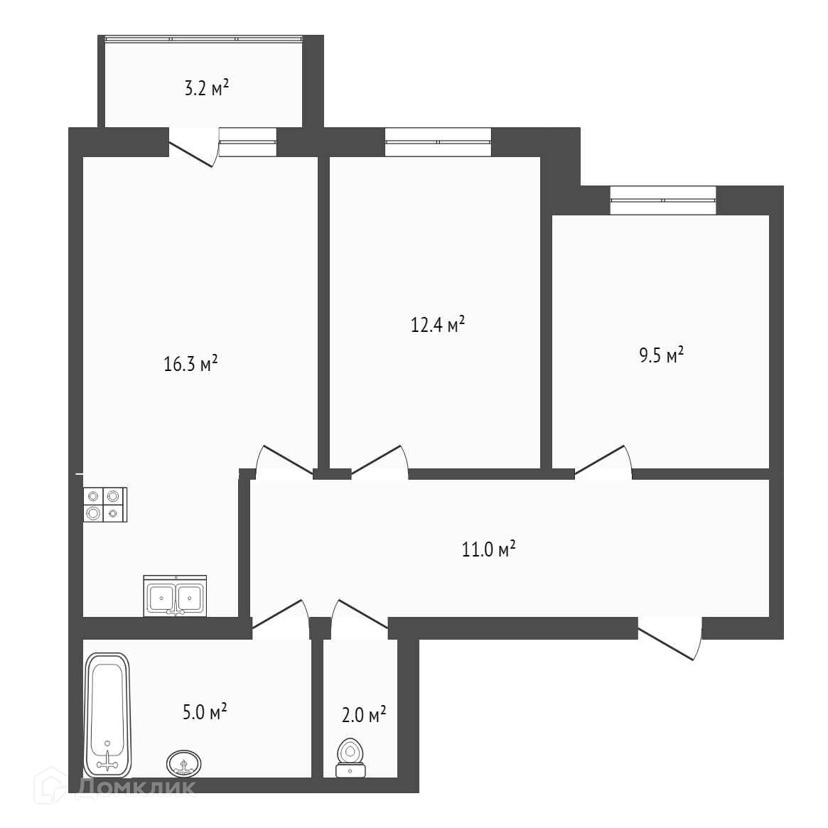 Общая площадь 56.2 м2