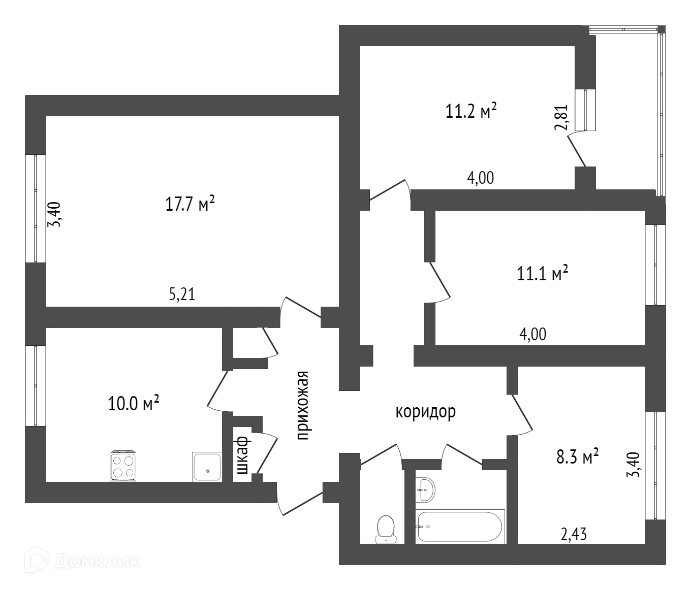 Общая площадь 74.2 м2