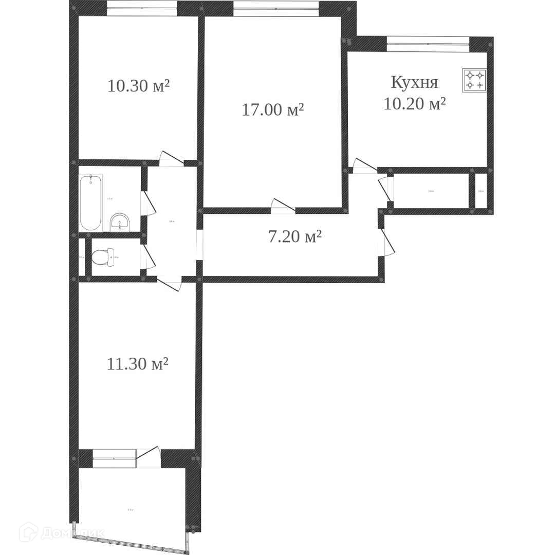 Площадь кухни 10.2 м2