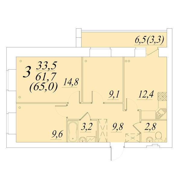 Общая площадь 65 м2