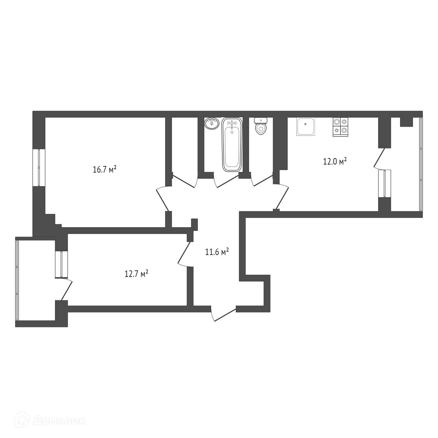 Общая площадь 60.9 м2