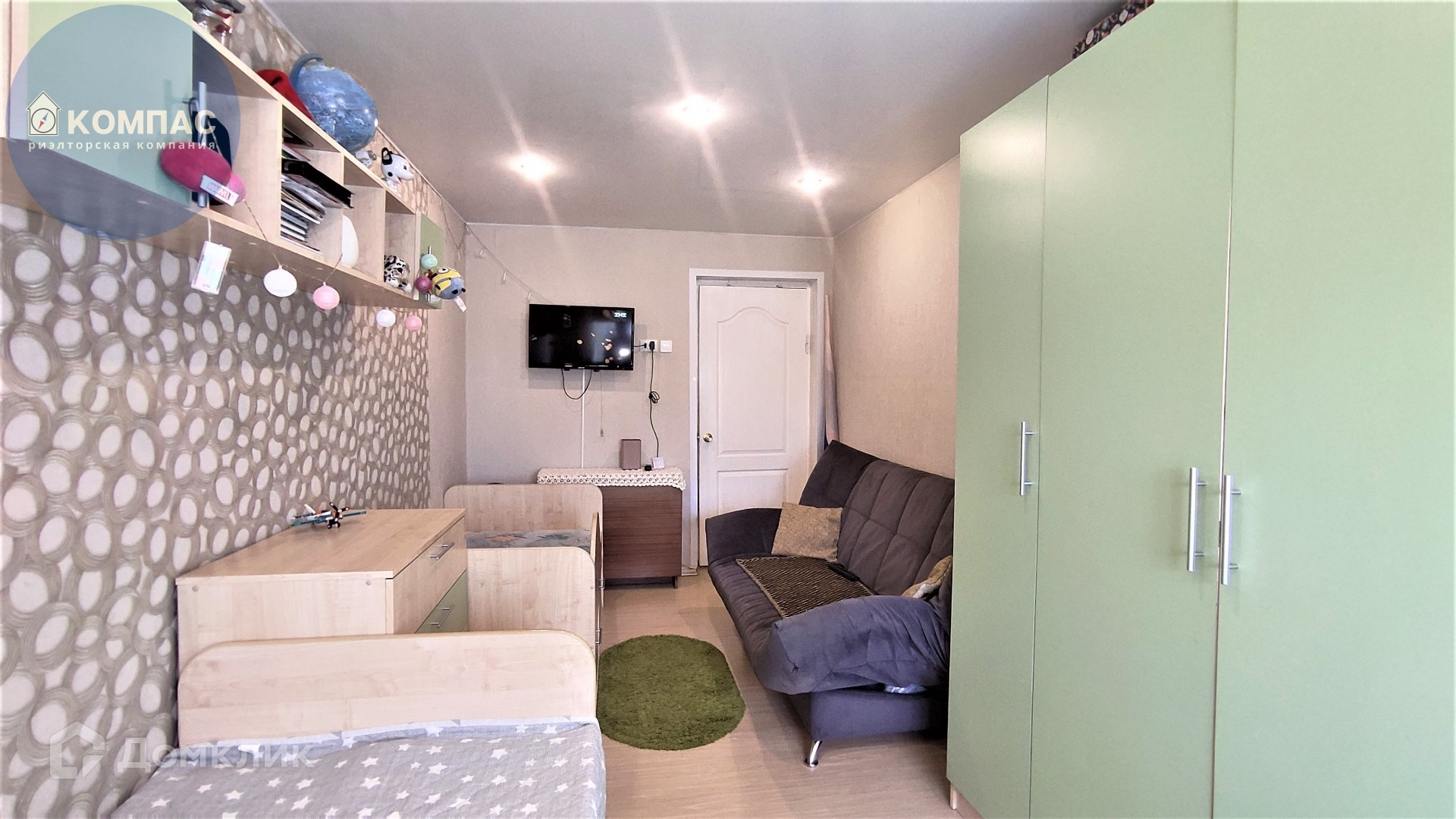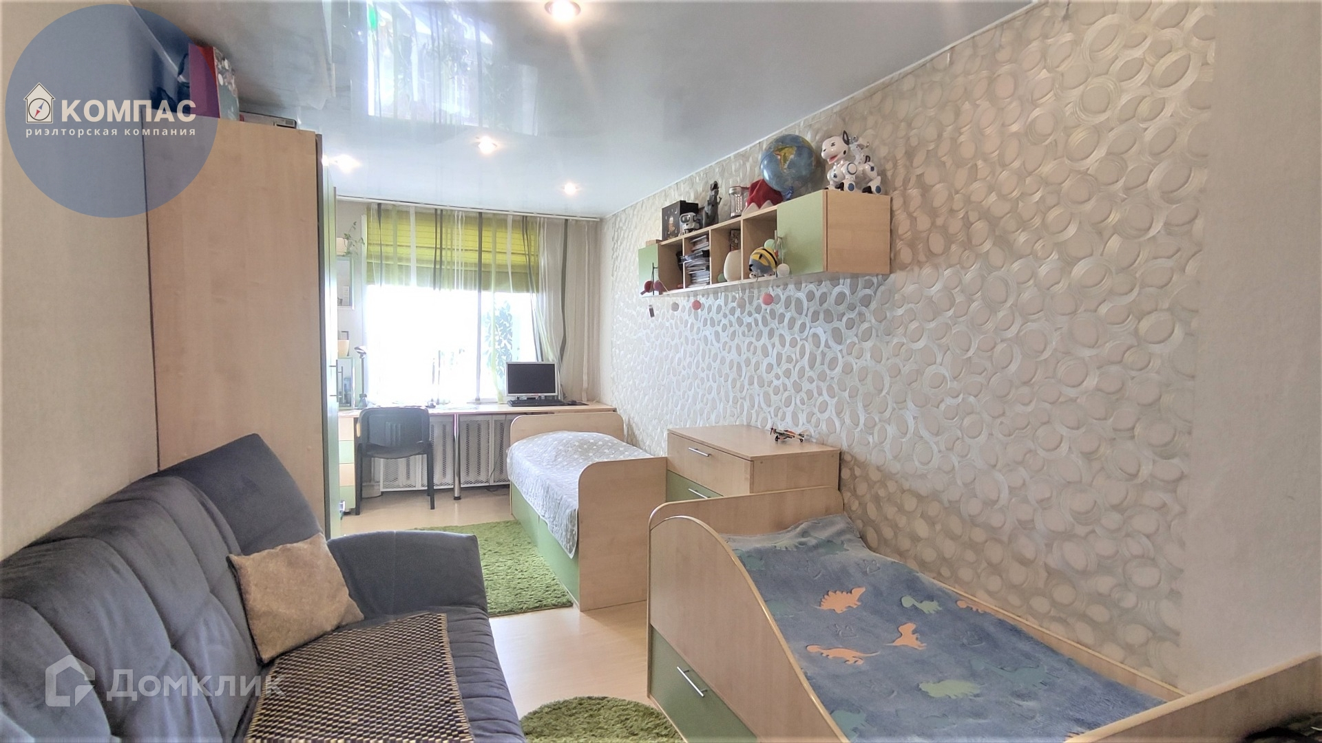 При продаже остается практически вся мебель. В спальне: кровать, два шкафа, тумба под телевизор, навесная полка, комод. Всё из одного комплекта. В детской комнате: две кровати, шкаф, стол, комод, навесная полка. В кухне: кухонный гарнитур с плитой. В прихожей: встроенный шкаф.