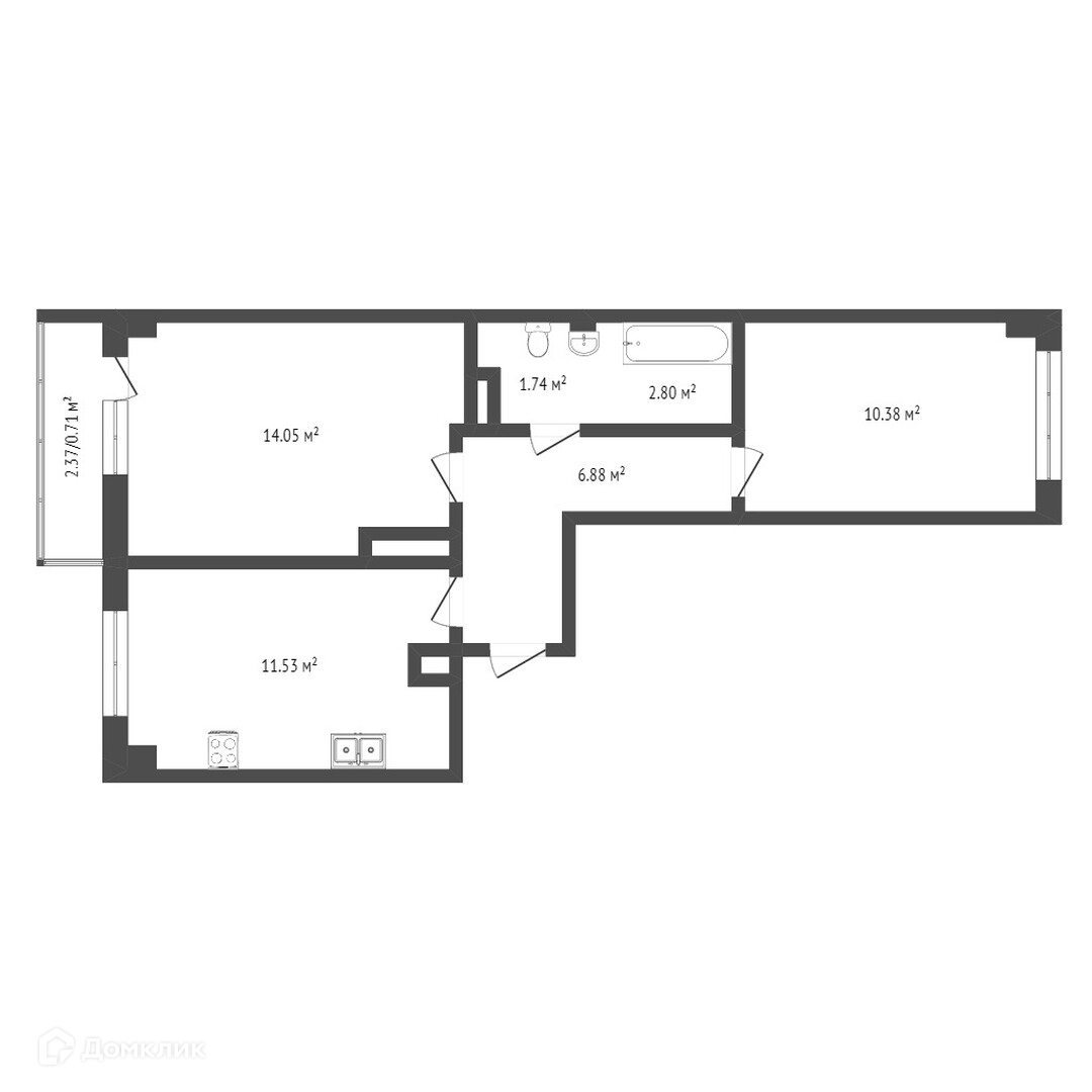 Балкон, лоджия 1 балкон