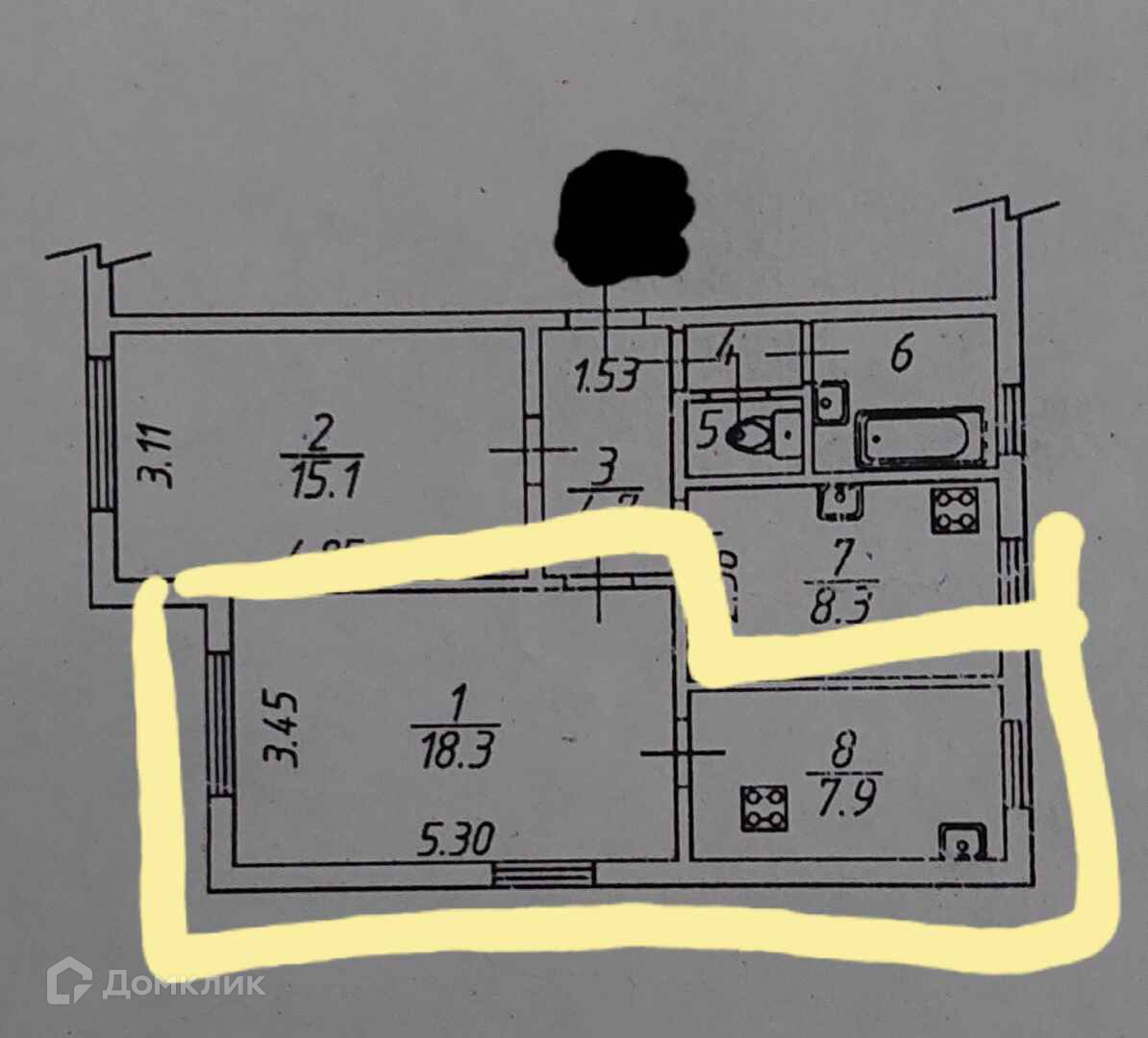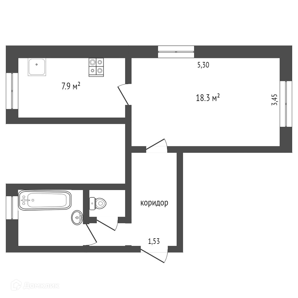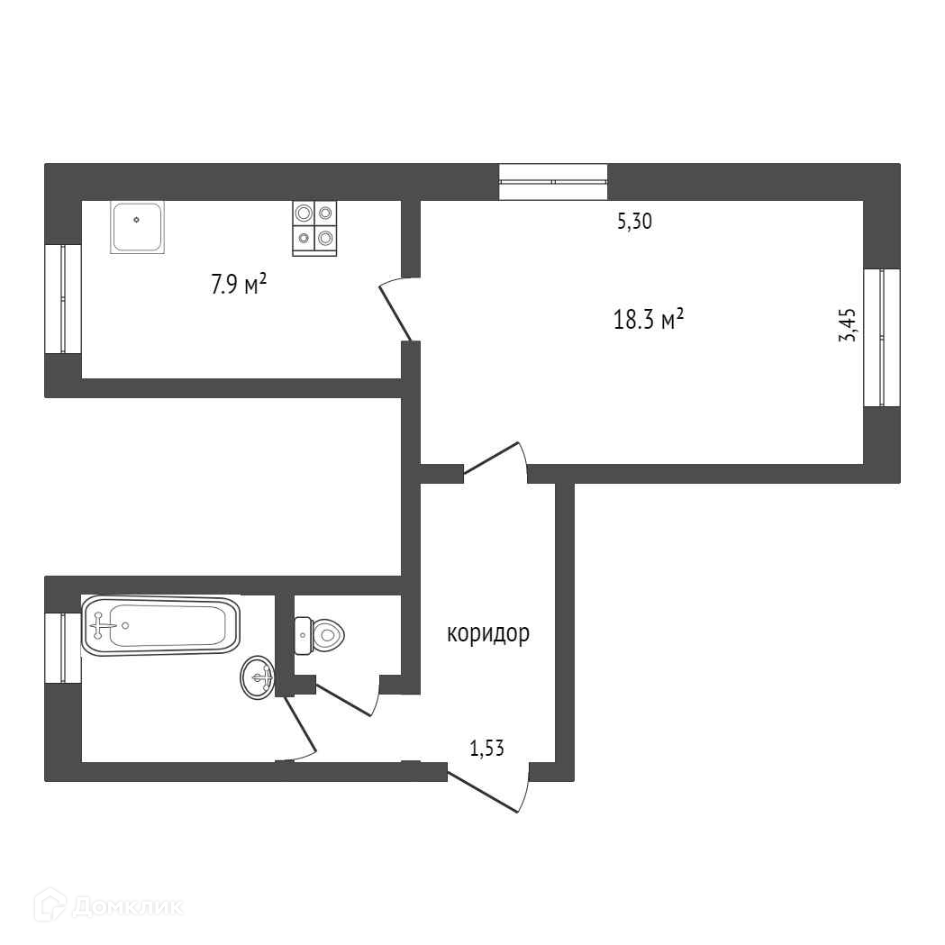Общая площадь 18.3 м2