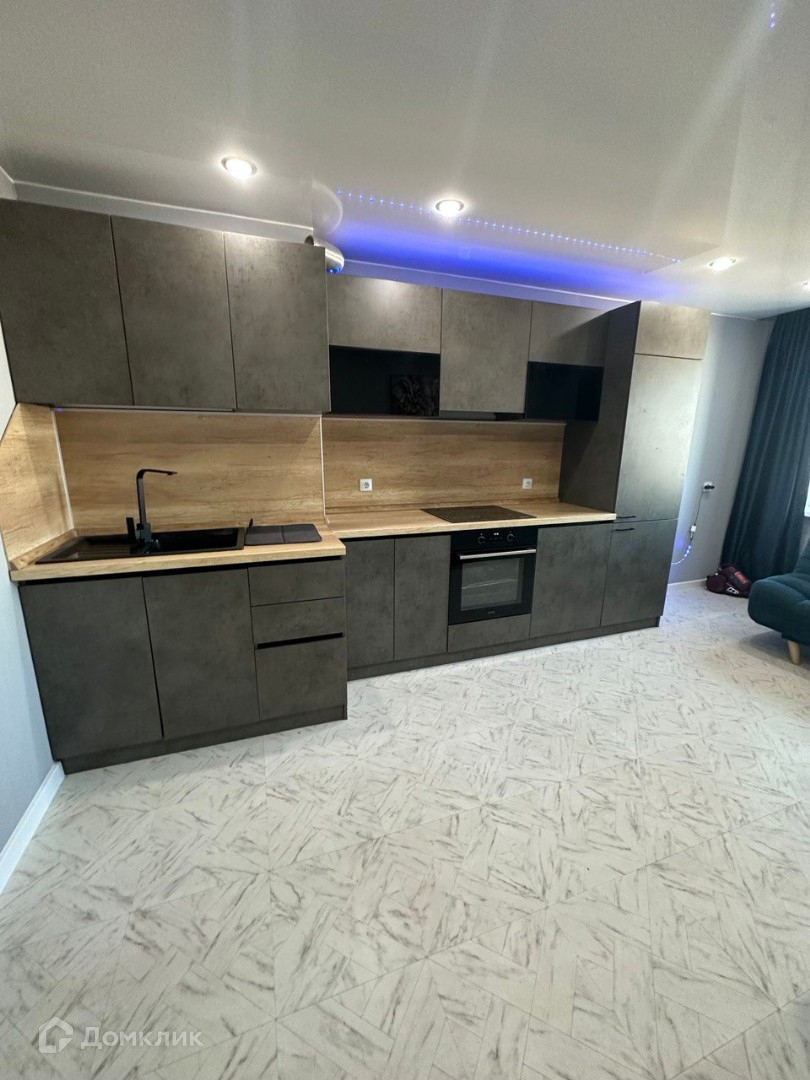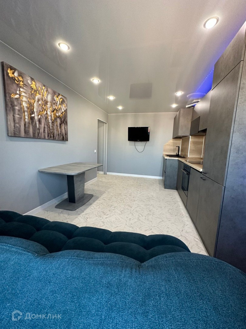 -В кухней-гостинной остается: в квартире остается кухонный гарнитур со встроенной техникой: встроенный холодильник, индукционная варочная поверхность, духовой шкаф. Новый диван, новый стол и стулья, телевизор.