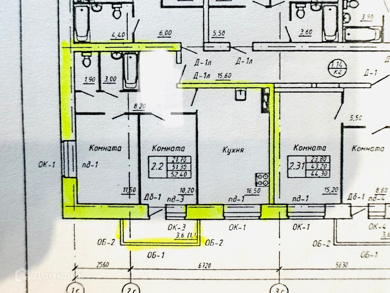 Общая площадь 52 м2
