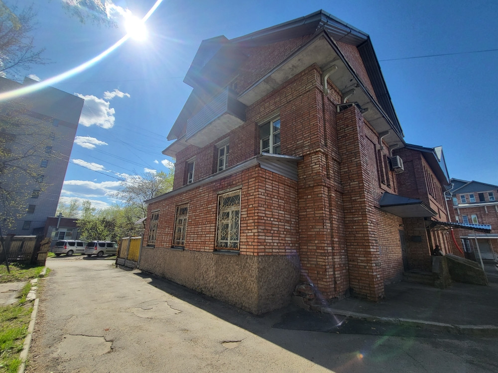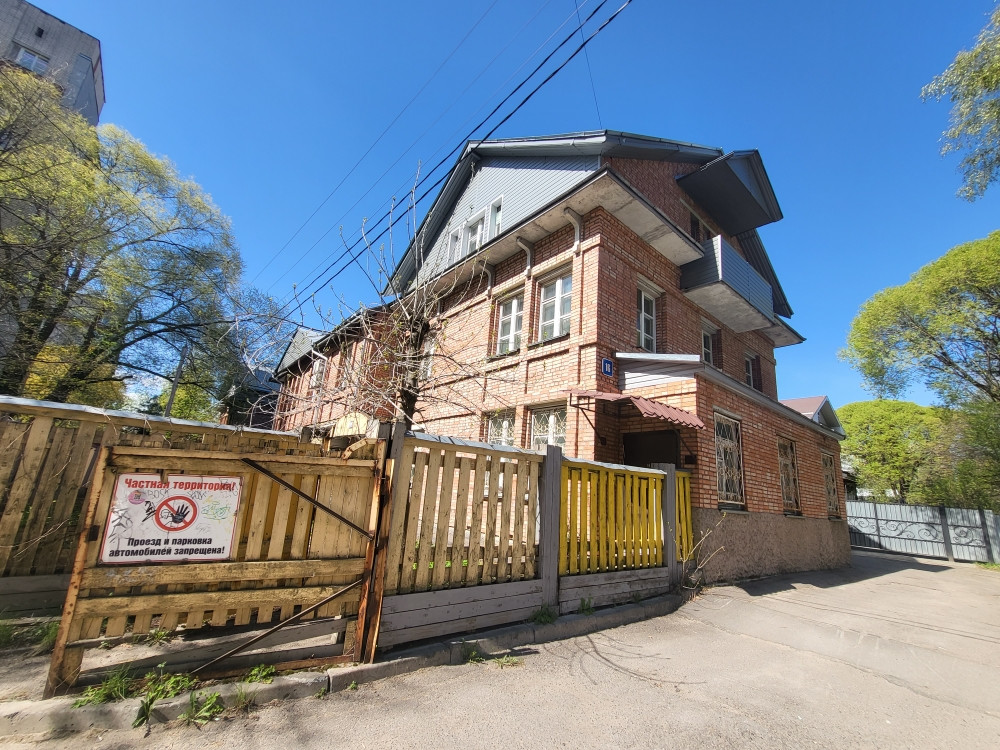 В цоколе здания свой отапливаемый гараж и подсобное нежилое помещение для хранения вещей, въезд на подземную парковку с улицы Челюскинцев