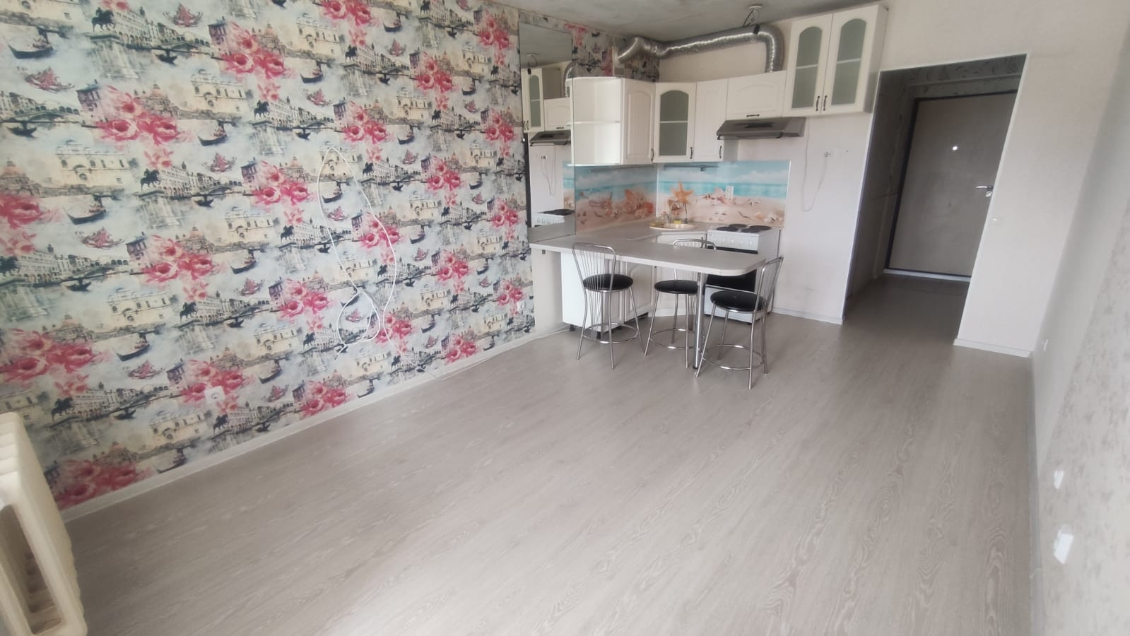 Светлая, тёплая квартира-студия с видом на "Рождественский парк". Балкон застеклён и утеплëн. Всю зиму жили с открытым балконом. Ванна акриловая. Остаётся всё, что на фото. Под первым этажом есть технический этаж. Соседи тихие, спокойные, этаж чистый. Рядом торговый центр  Шоколад, Аксон, Лента, Fitness laif. До остановки 3 мин. Рядом детский сад 117 и новая школа # 26 (корпус Охмыльцево).  Видеодомофон.У квартиры 4 собственника, 2 взрослых и 2 детей.