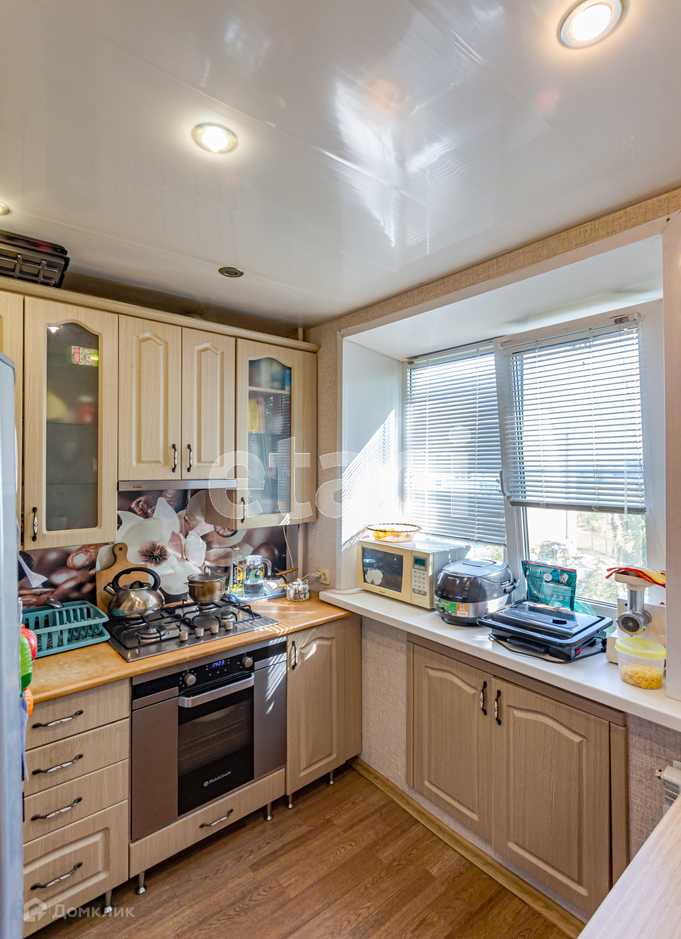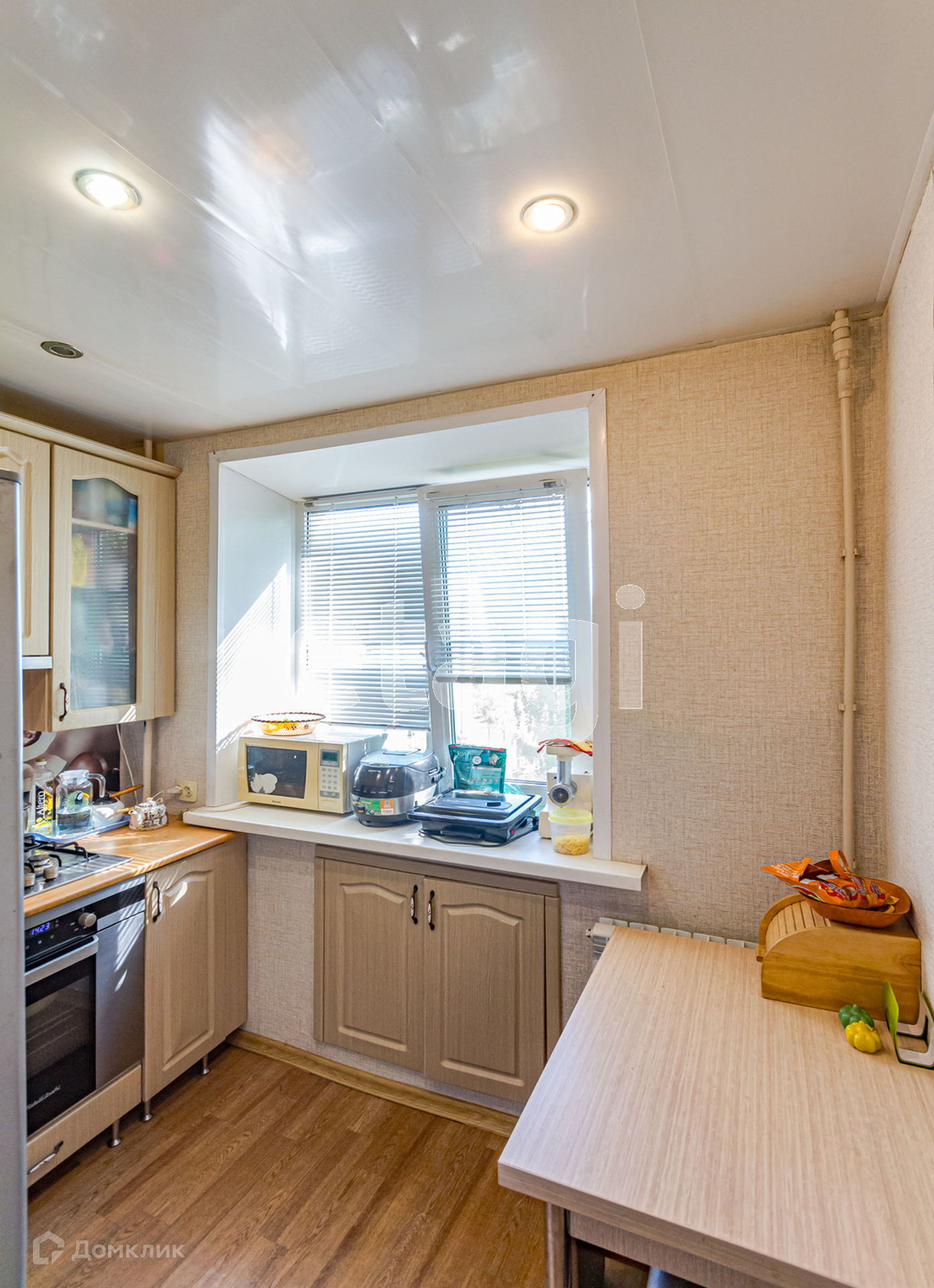 В квартире остается кухонный гарнитур со встроенной техникой. Номер в базе: 421168 .