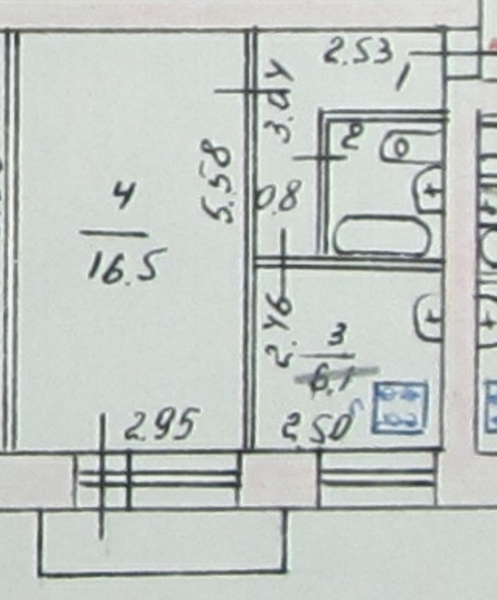 Жилая площадь 16.5 м2