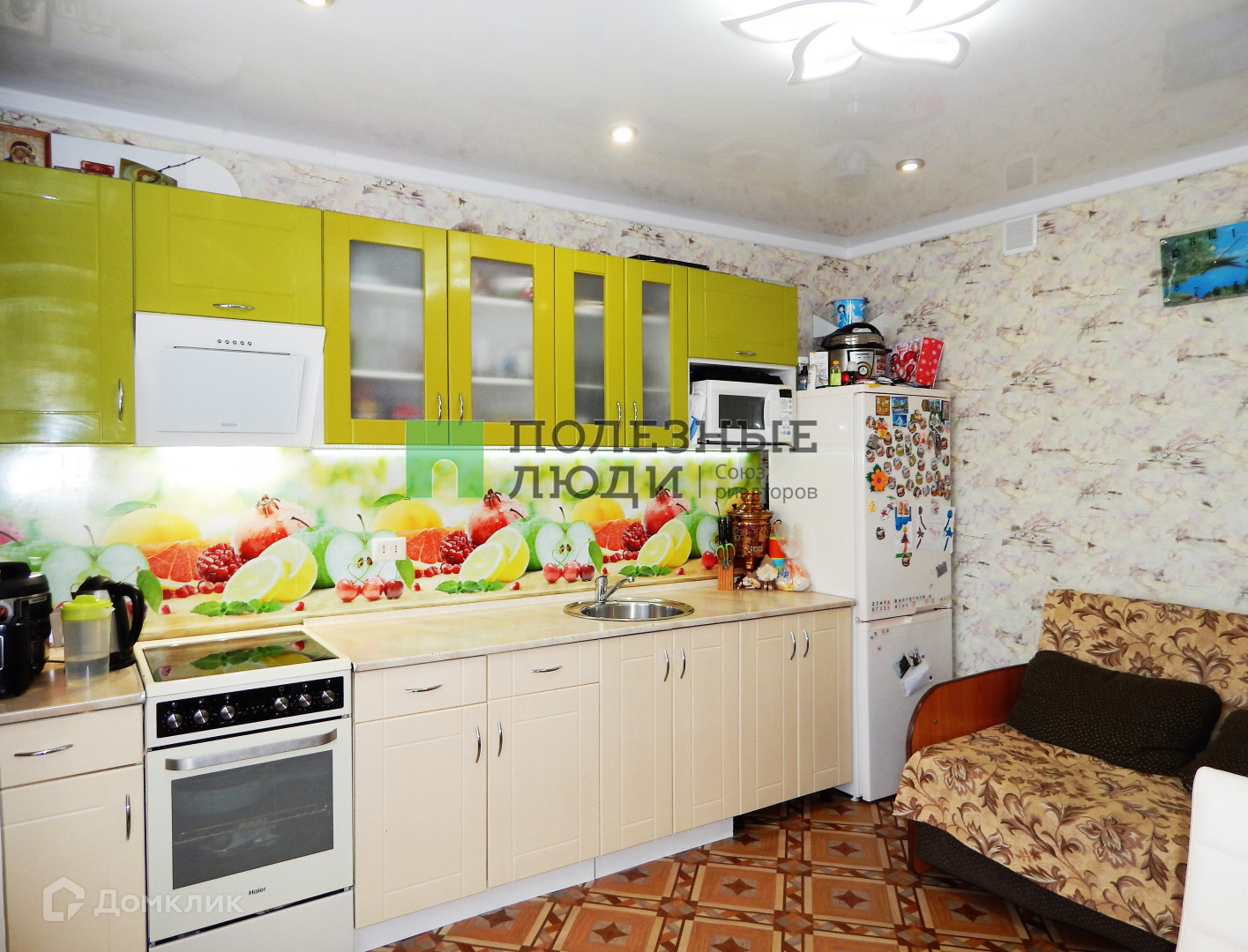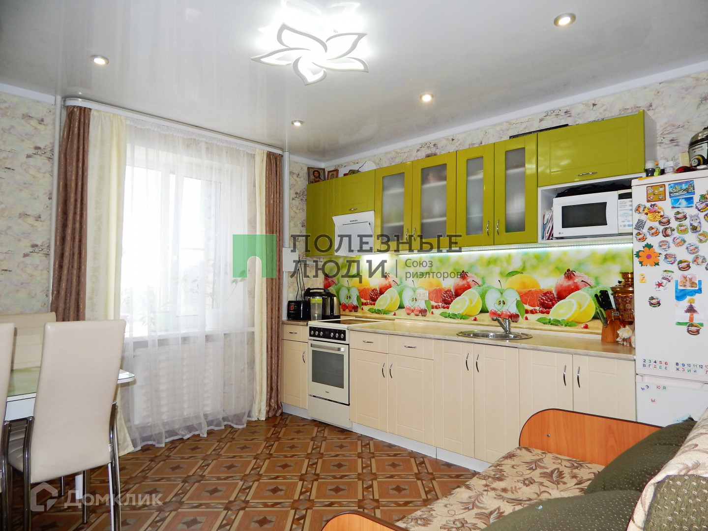 В квартире частично остаётся мебель: кухонный гарнитур, вместительный шкаф-гардероб в комнате.