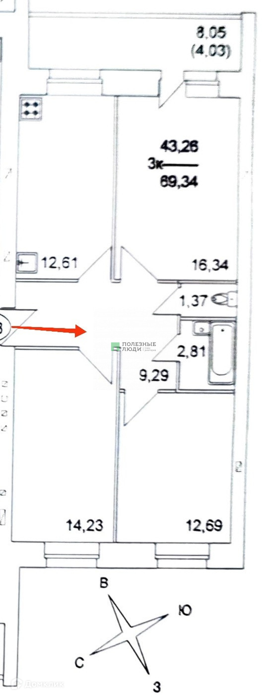 Жилая площадь 43 м2