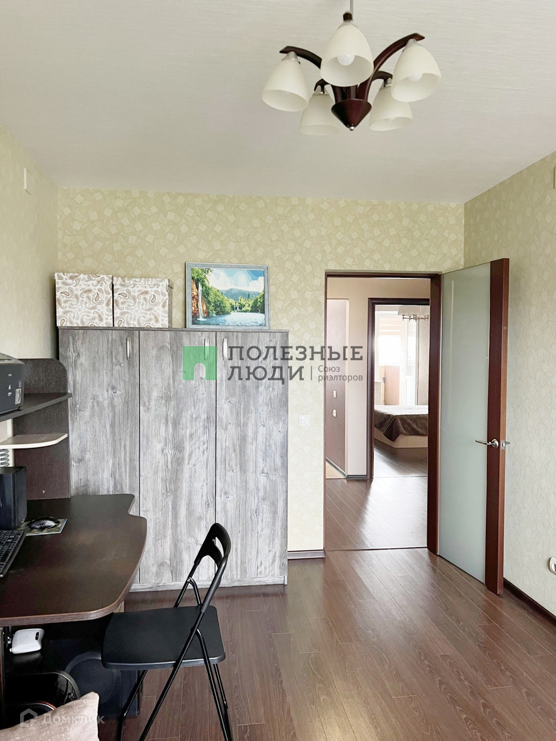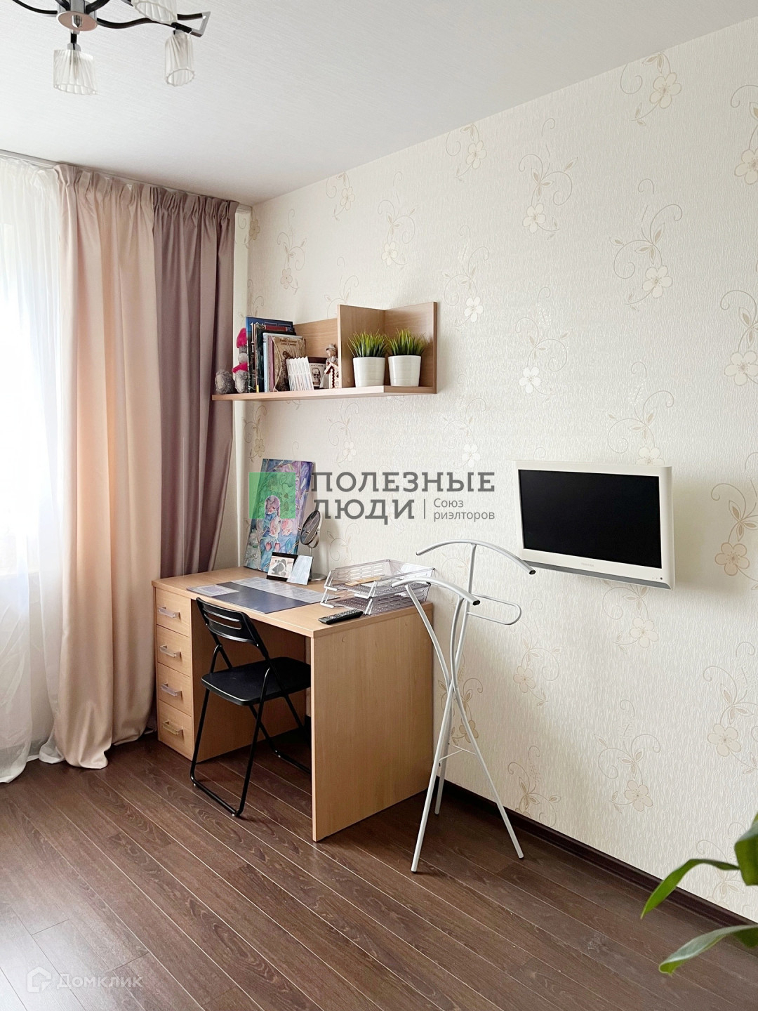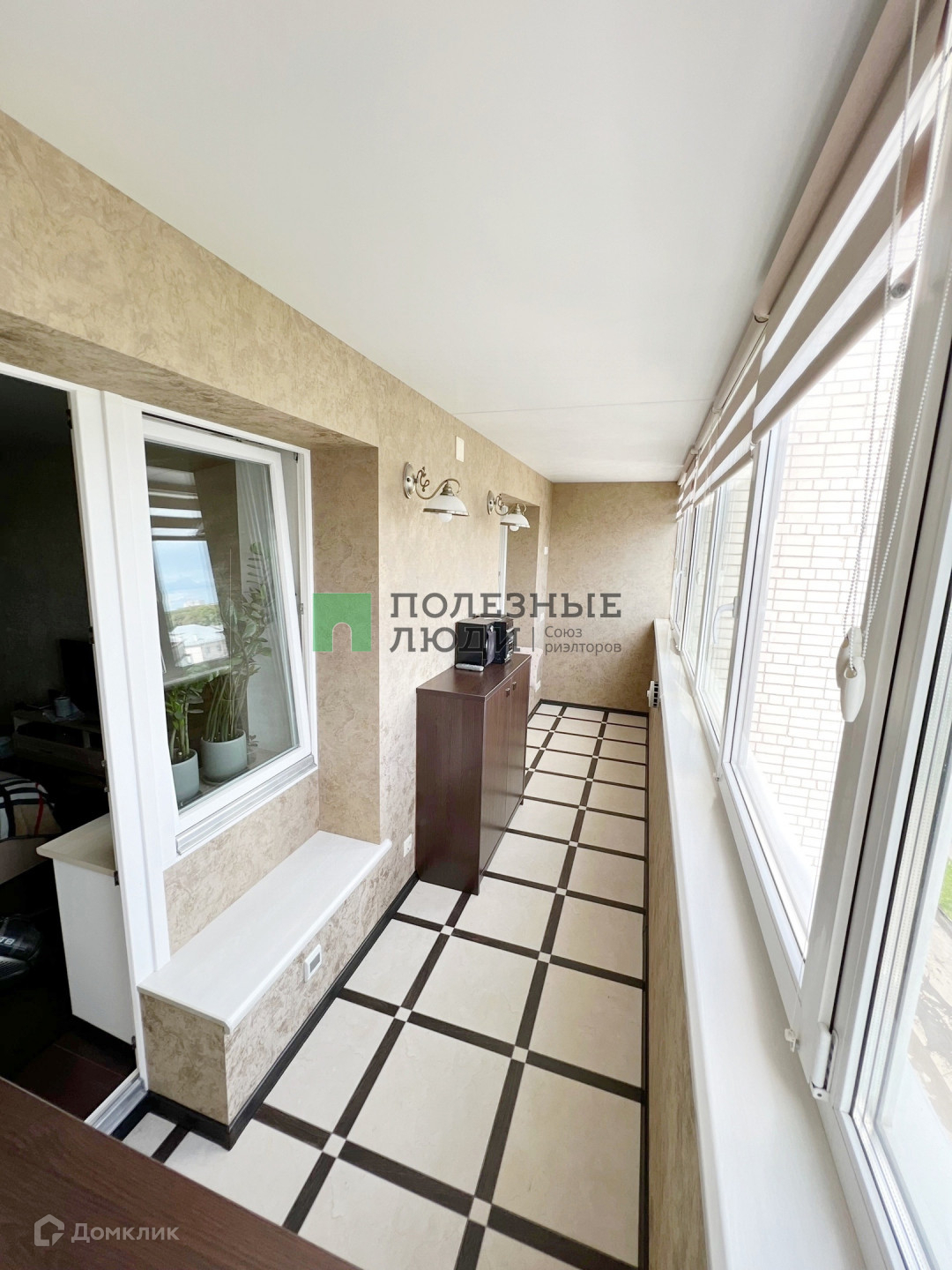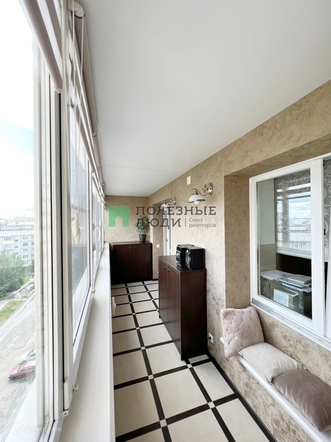 Утепленная по периметру лоджия с отличным видом на город не оставит без внимания ценителей личного пространства, которая полностью подготовлена под кабинет: проведен теплый пол, освещение, розетки и интернет.