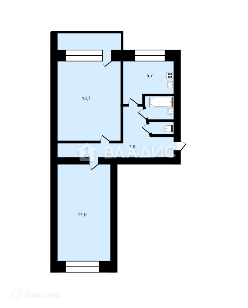 - две изолированные комнаты на разные стороны 13,7 и 14 кв.м., которые обеспечат комфорт и приватность для всех членов семьи