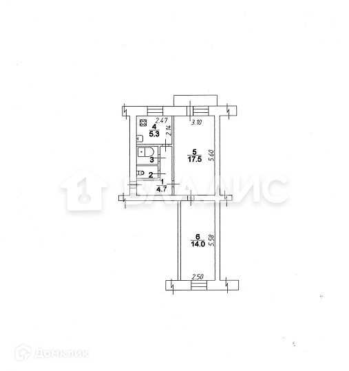 2-комнатная квартира, 45 м2, этаж 3 / 5, на продажу в Вологде, Петрозаводская улица, 22