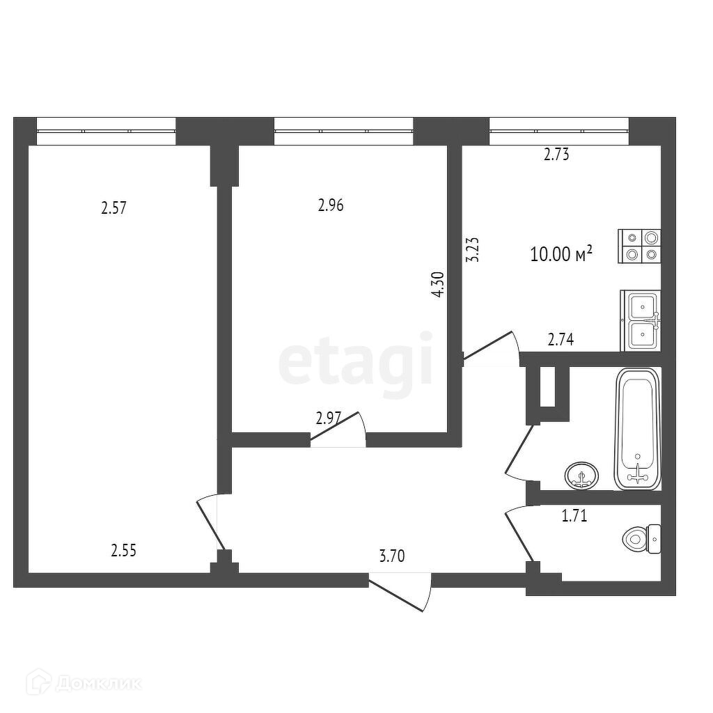 2-комнатная квартира, 51.9 м2, этаж 4 / 10, на продажу в Вологде, Молодёжная улица, 20