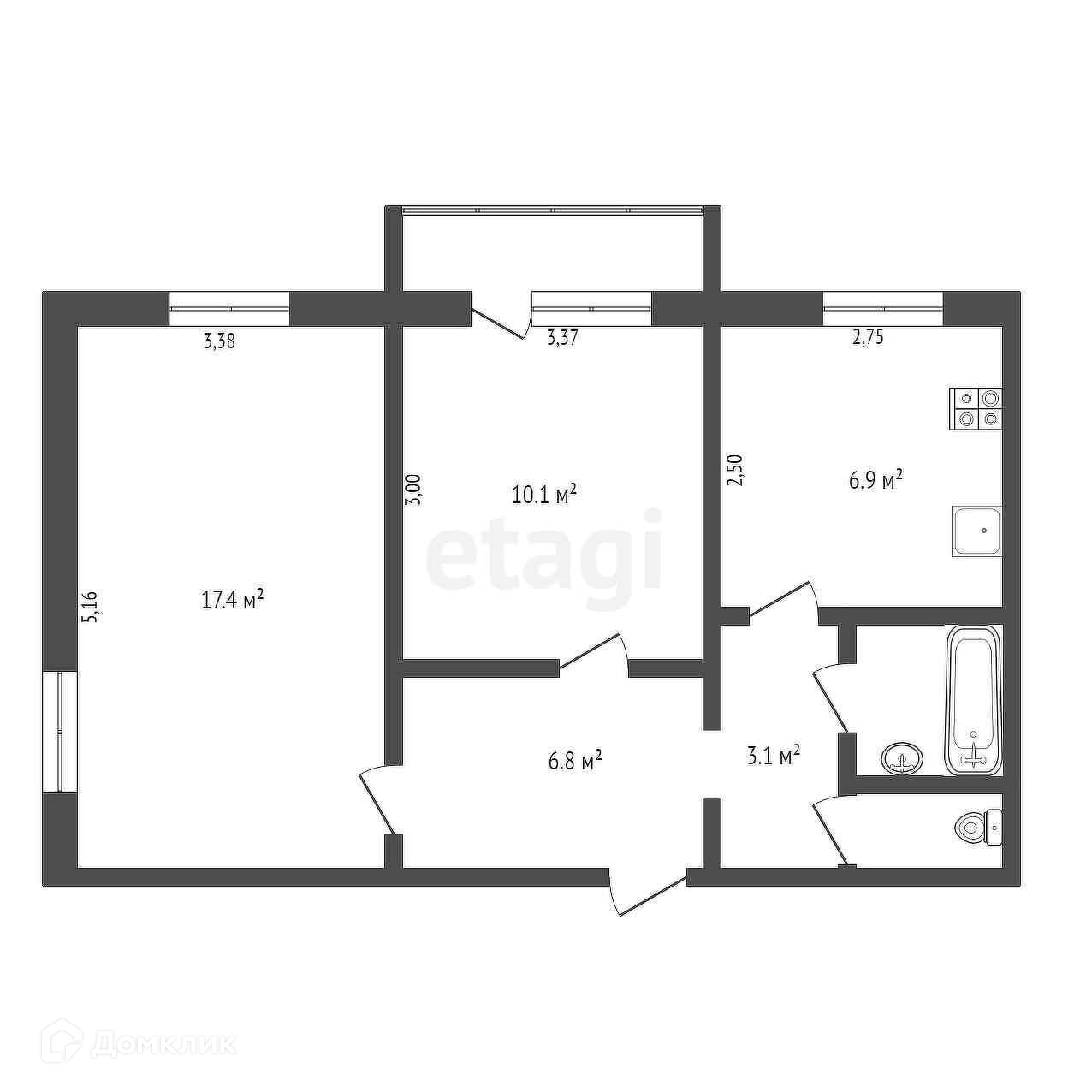 Общая площадь 49.2 м2