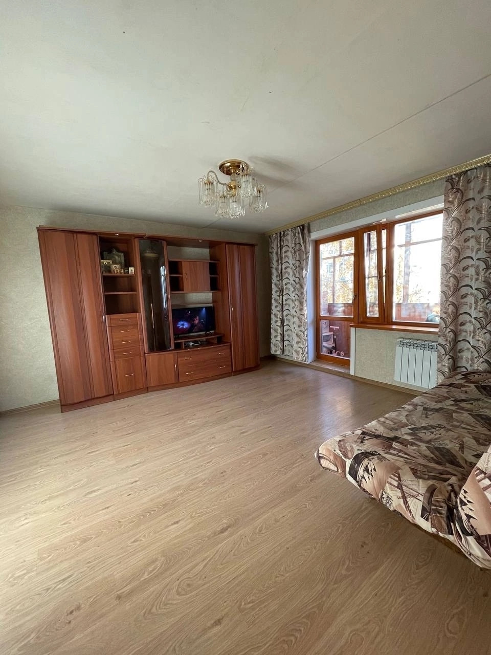 не угловая. Квартира с косметическим ремонтом. Натяжной потолок. Деревянные евроокна. Ламинат. Санузел совмещённый,  плитка, новая сантехника.