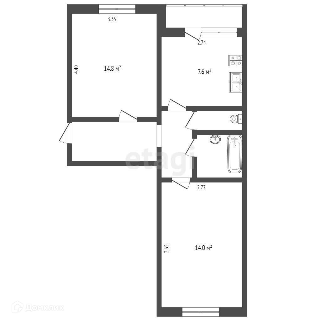 2-комнатная квартира, 48 м2, этаж 2 / 5, на продажу в Вологде, Новгородская улица, 6
