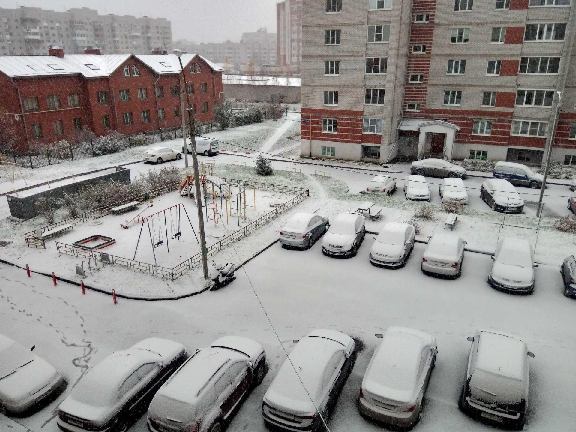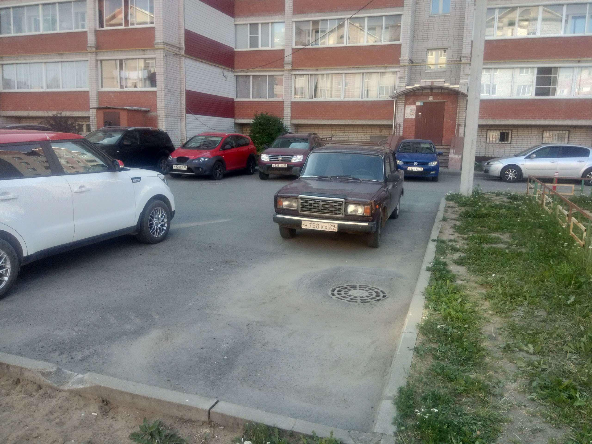 Во дворе парковочные места, детская площадка, в соседнем доме частный детский садик.