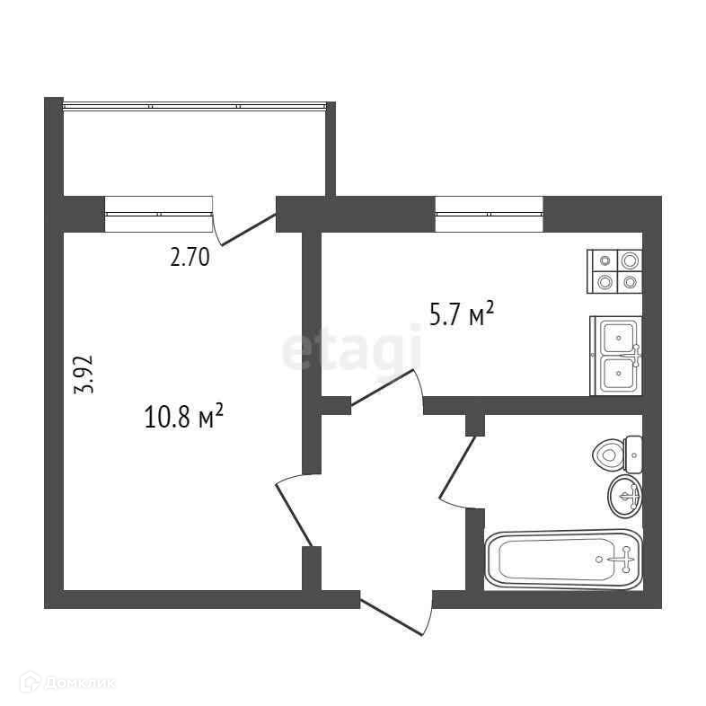 Площадь кухни 5.7 м2