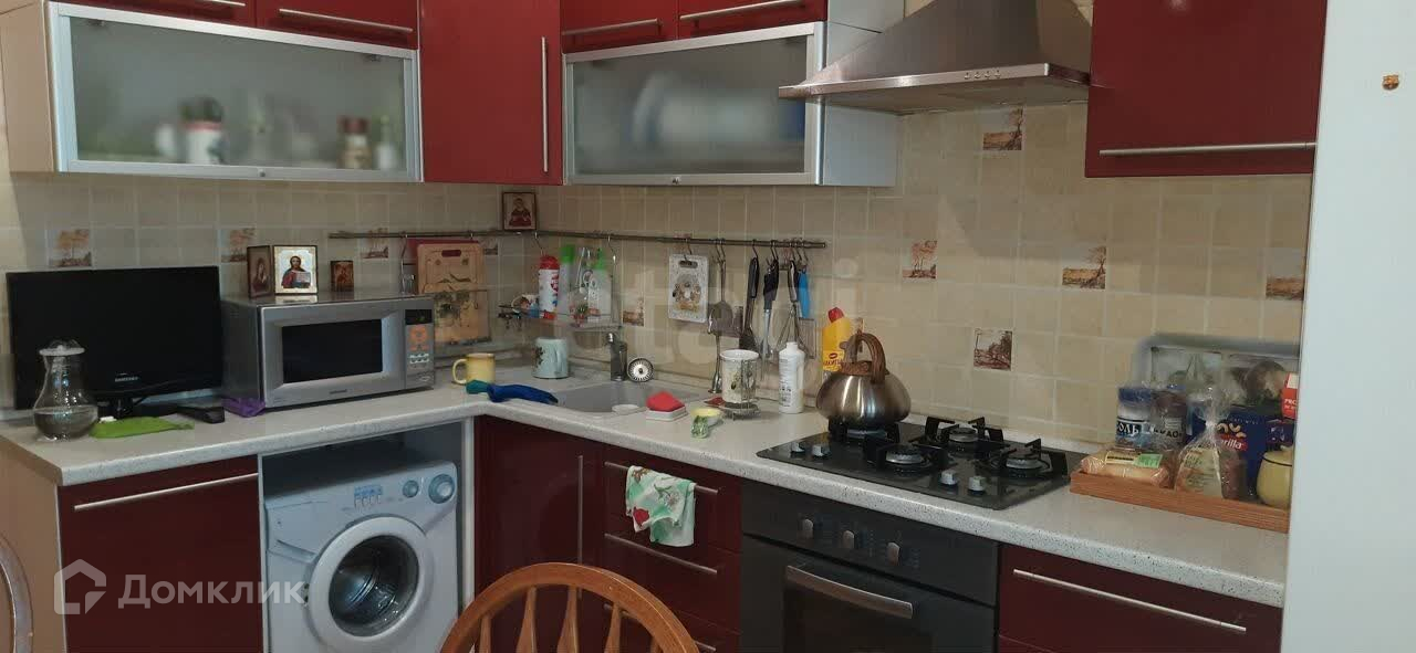 Кухня оборудована встроенной бытовой техникой (остается в квартире, также холодильник и стиральная машина), фильтр для воды. Раздельные ванна с туалетом, водонагреватель в ванной.