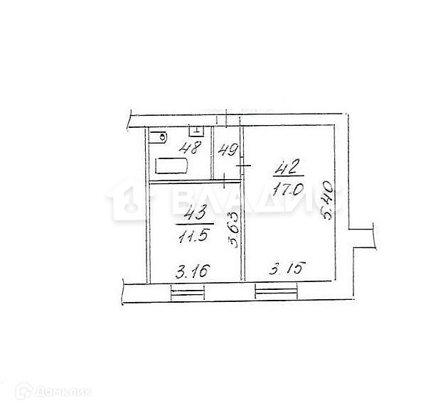 Общая площадь 34.6 м2