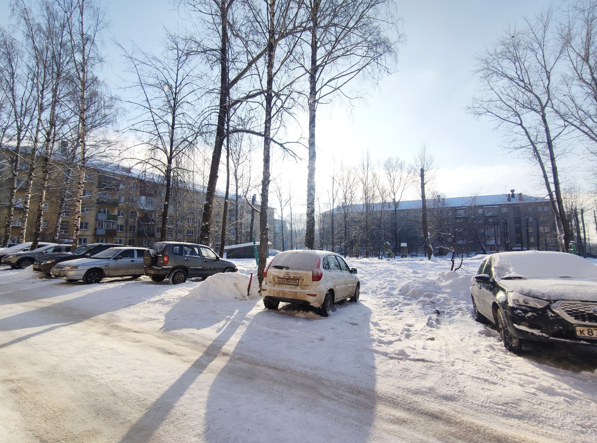 Место спокойное. Проезды во дворе заасфальтированы, достаточно места для парковки, вокруг много зелени. Большая дворовая территория, где можно свободно бегать и играть детям.