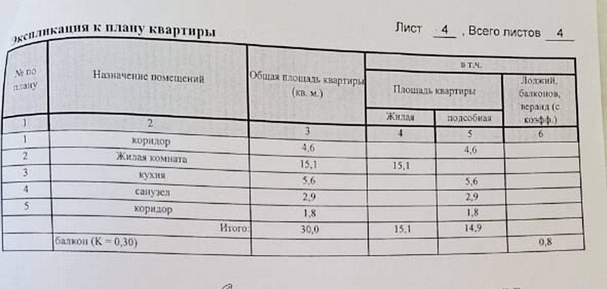 Общая площадь 30 м2
