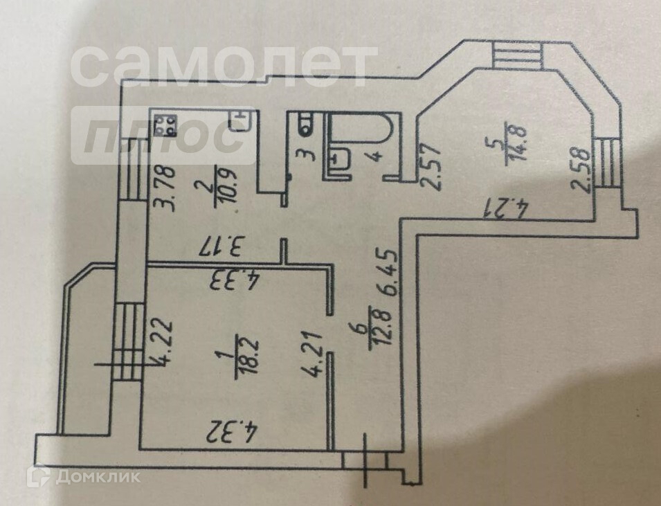 Комнаты 18.2 и 14.8 кв.м., правильной формы, одна из комнат с эркерными окнами.