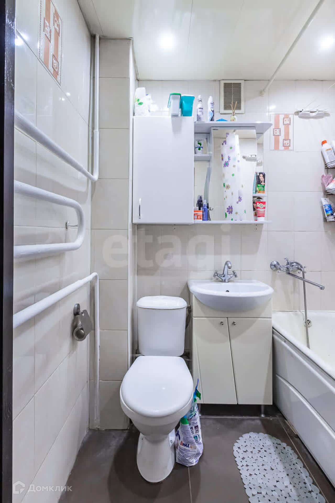 Санузел совмещен, требует ремонта.