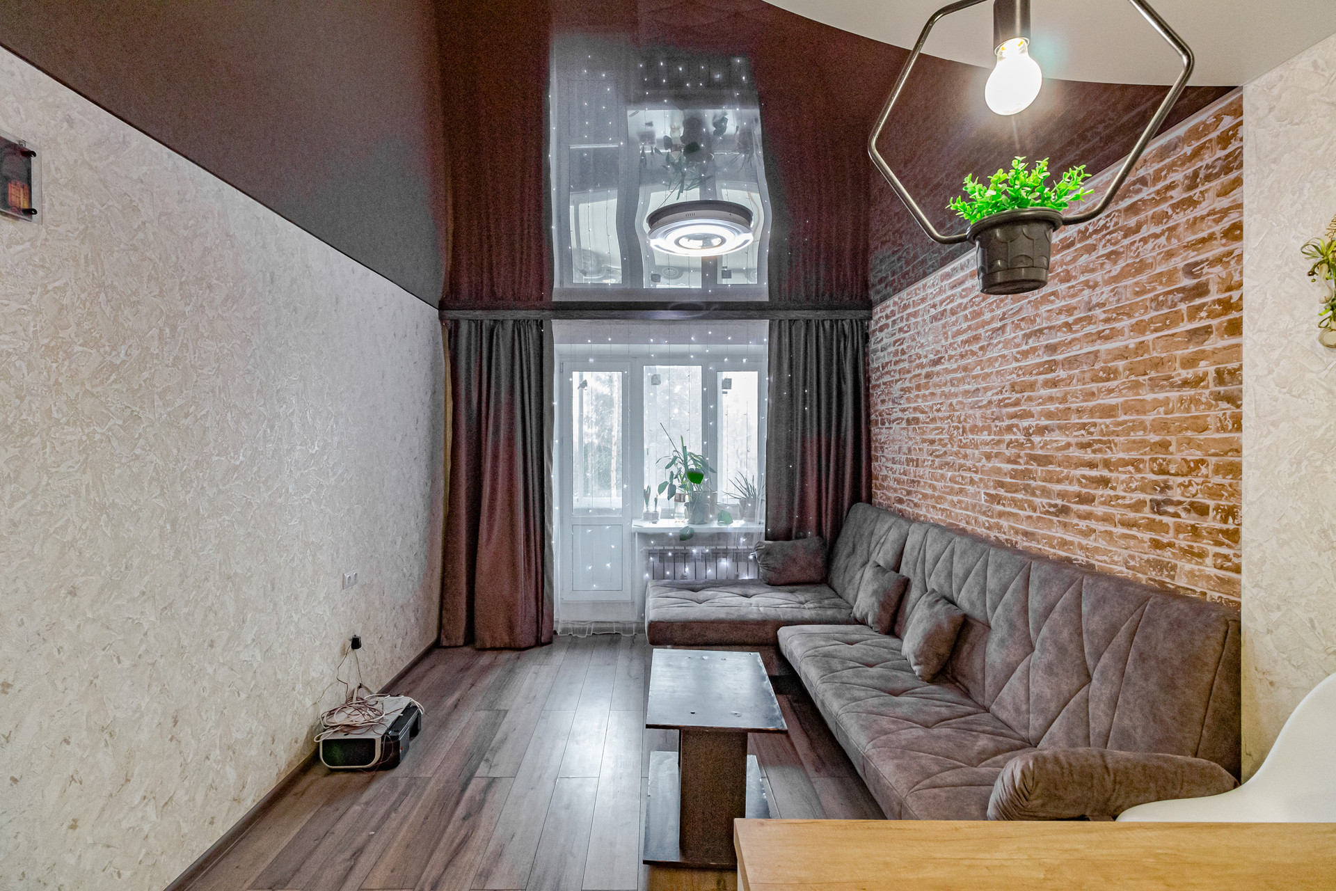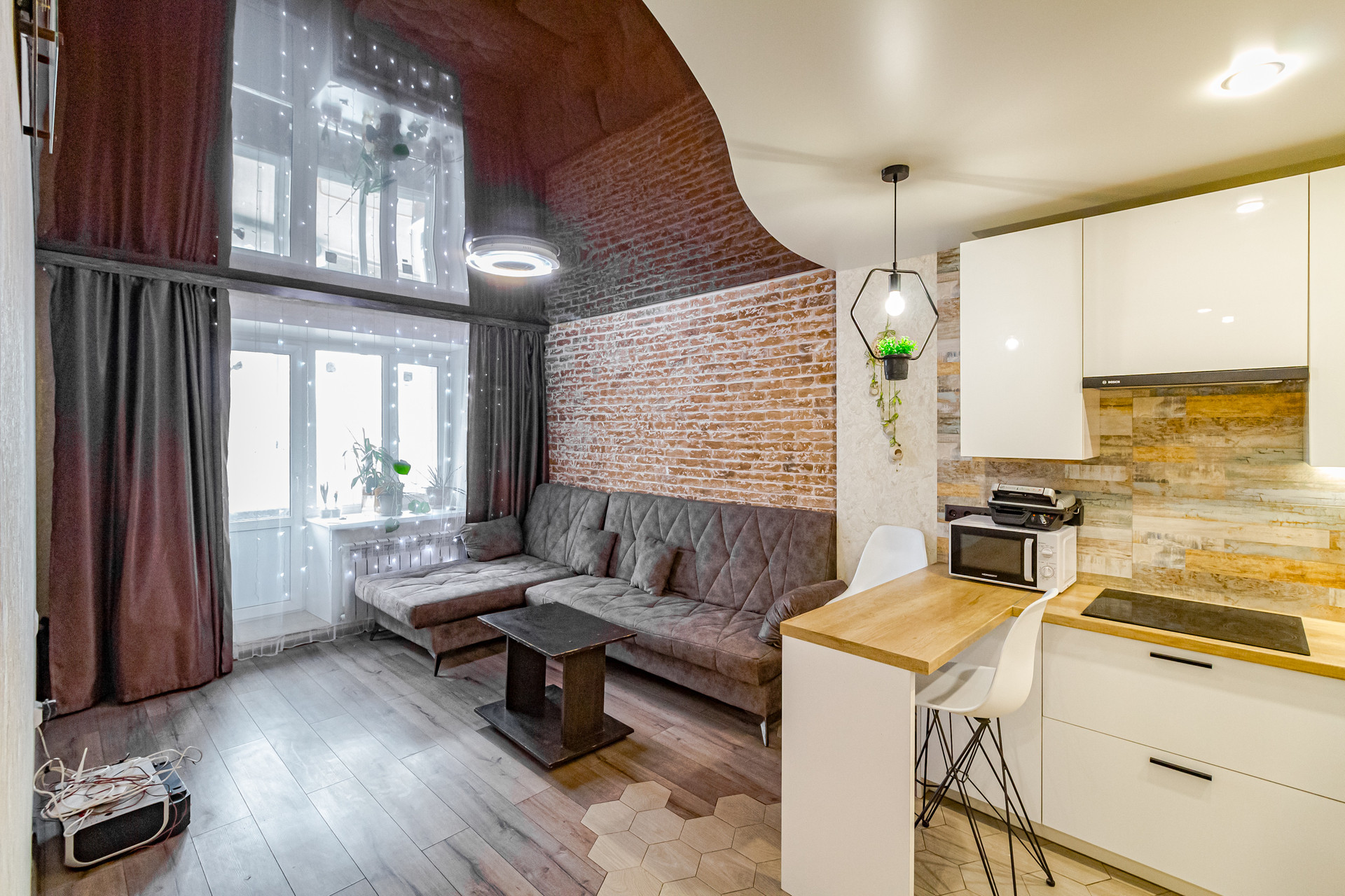 - Кухня-гостиная - 21 кв.м. и спальня;
