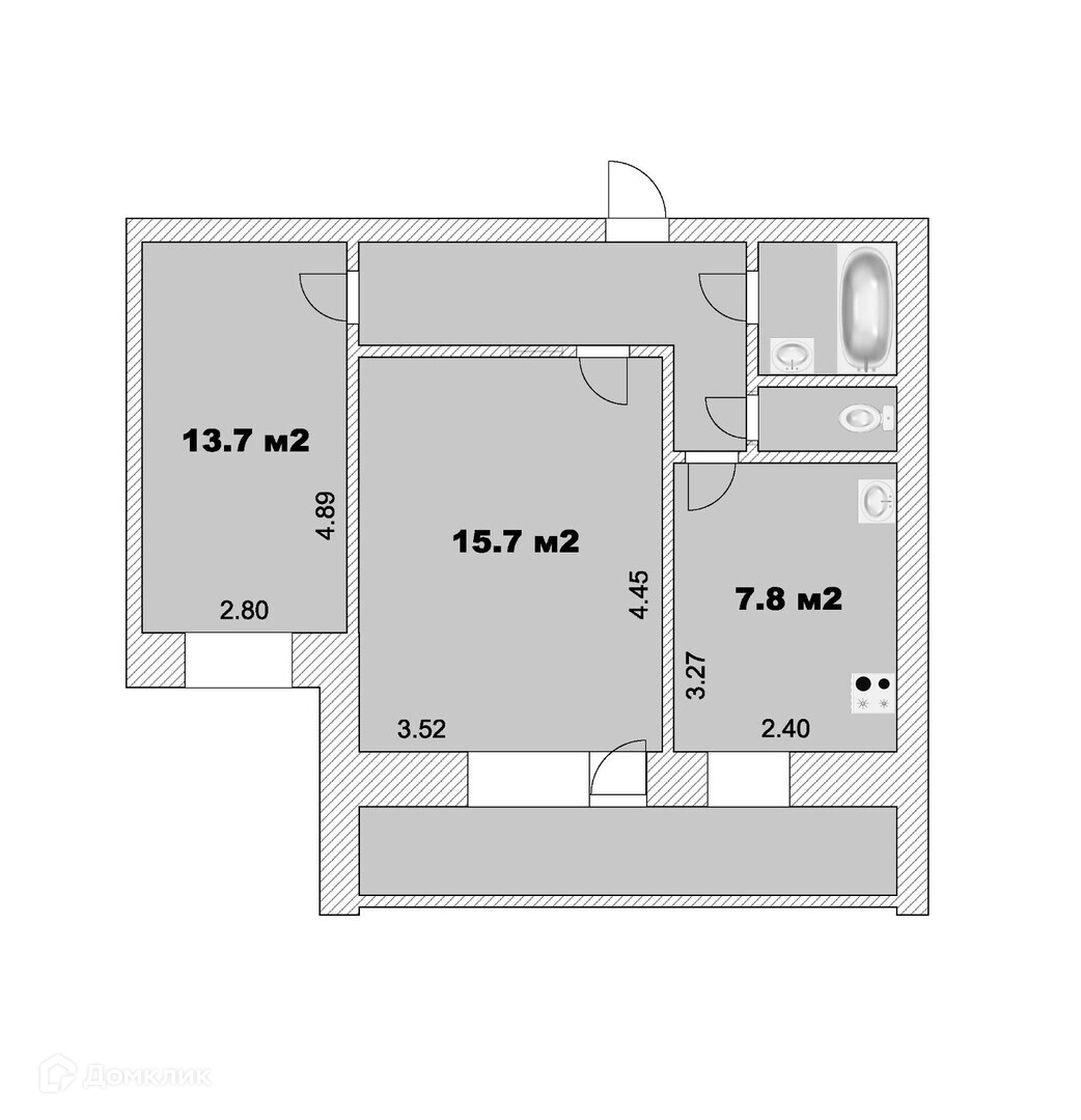 Общая площадь 51.8 м2