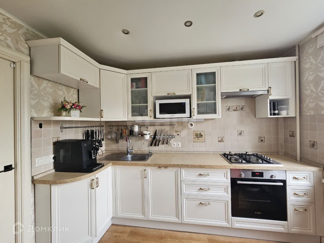Расположена на 4 этаже 5-этажного дома. Все комнаты изолированные, санузел раздельный, лоджия застеклена. Сделан косметический ремонт: окна пластик, потолки натяжные, на полу в комнатах - ламинат, на кухне - линолеум. При продаже остается кухонный гарнитур со встроенной техникой (плита, духовой шкаф и посудомоечная машина), большой шкаф в прихожей, водонагреватель, кондиционер, остальная мебель по договоренности.