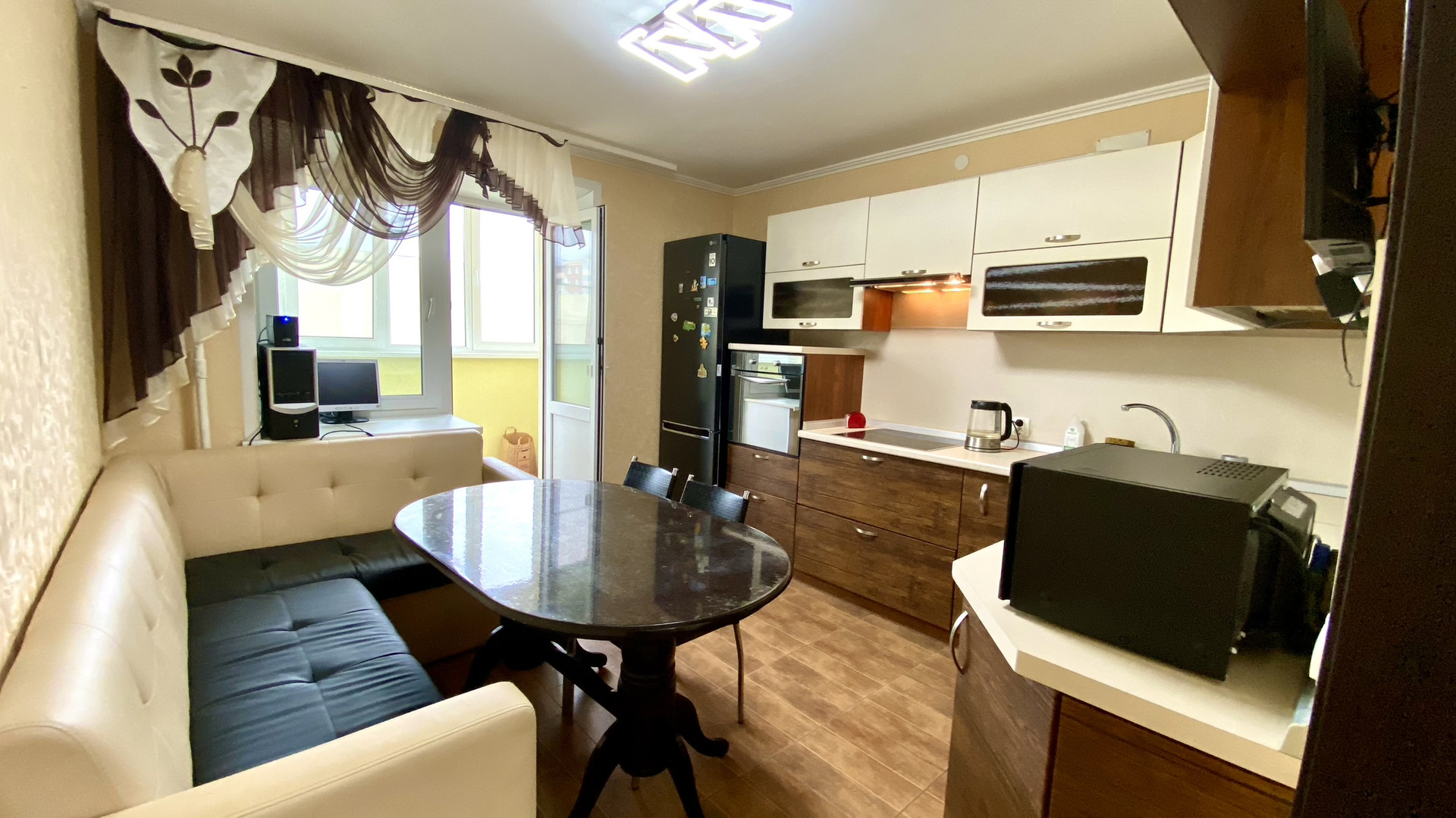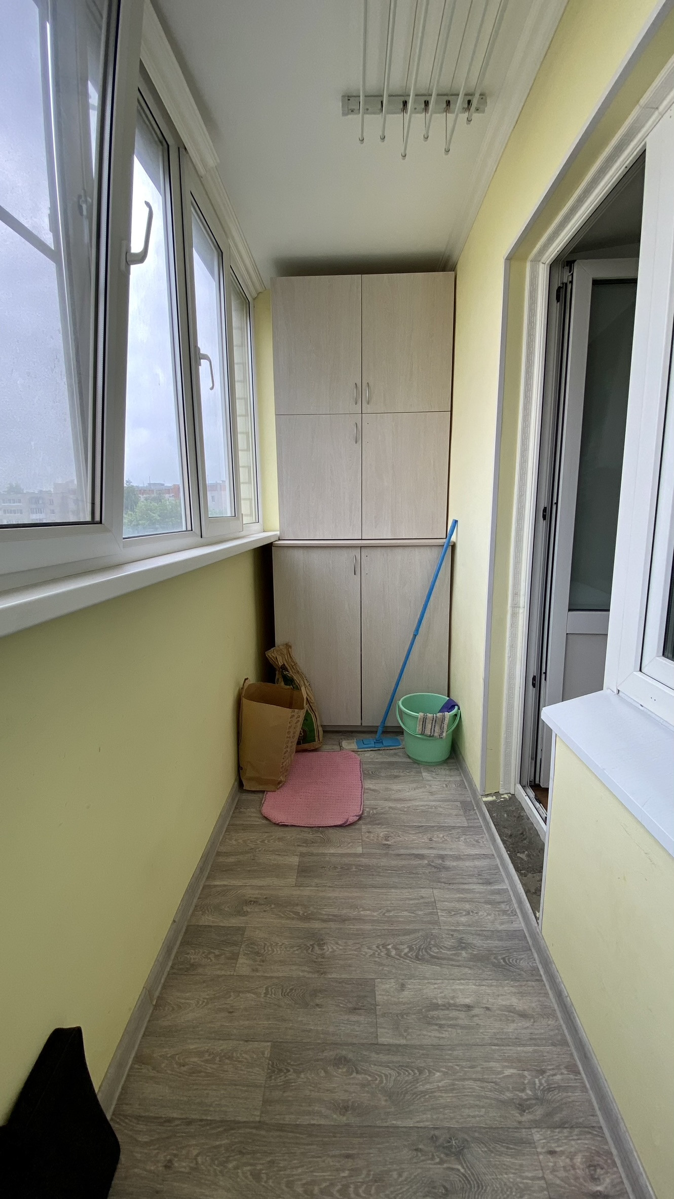 С кухни выход на балкон который обшит и застеклен.