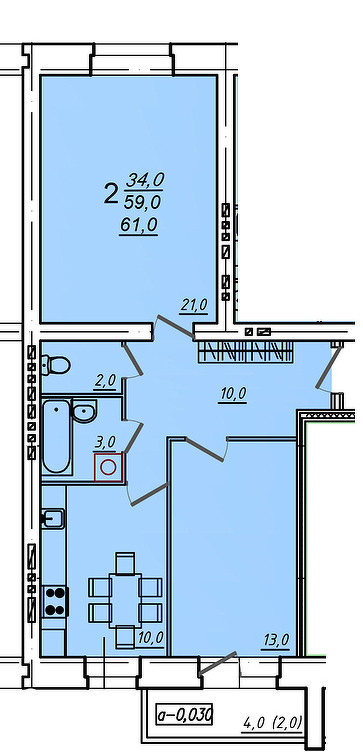Общая площадь 61 м2
