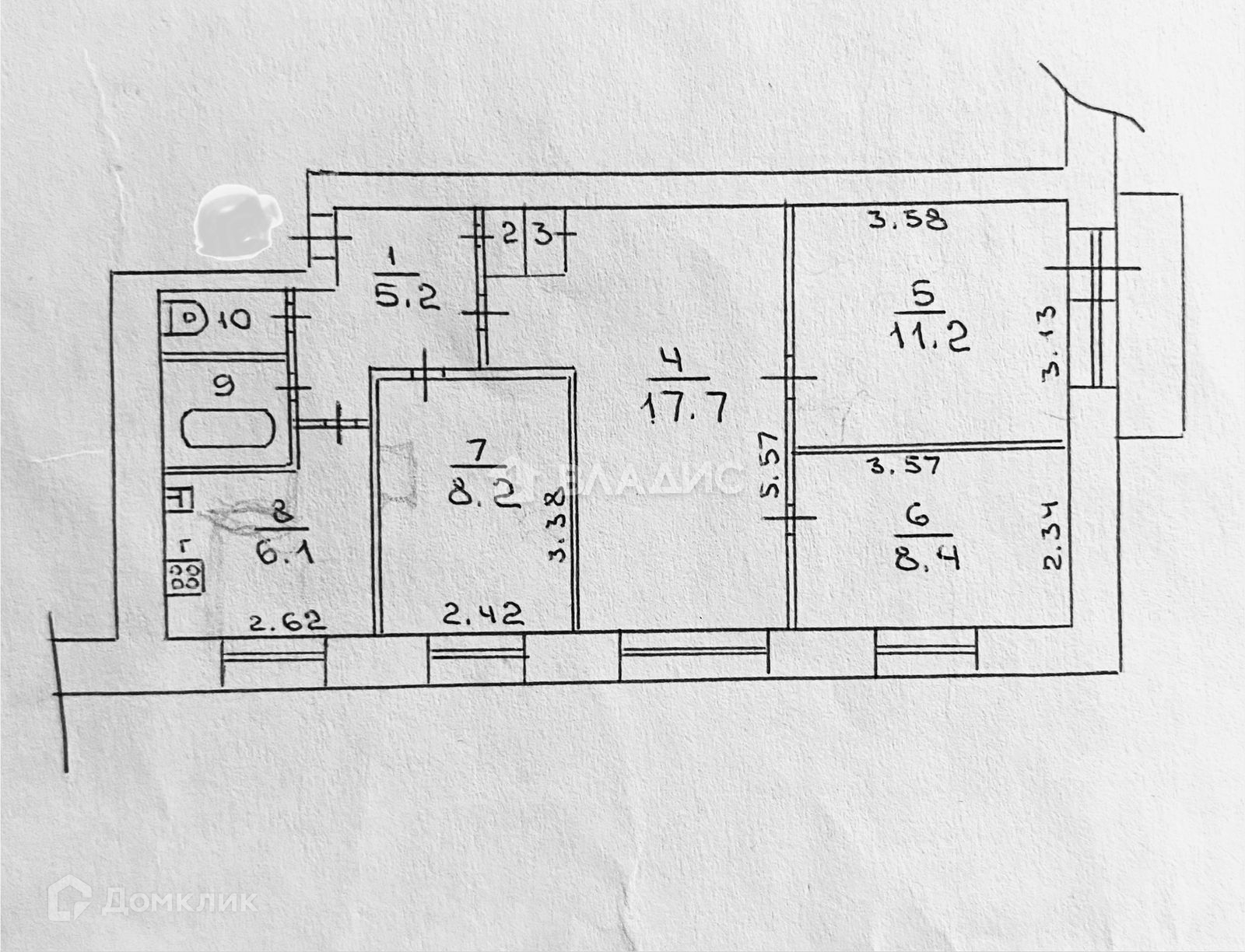 Общая площадь 60.9 м2