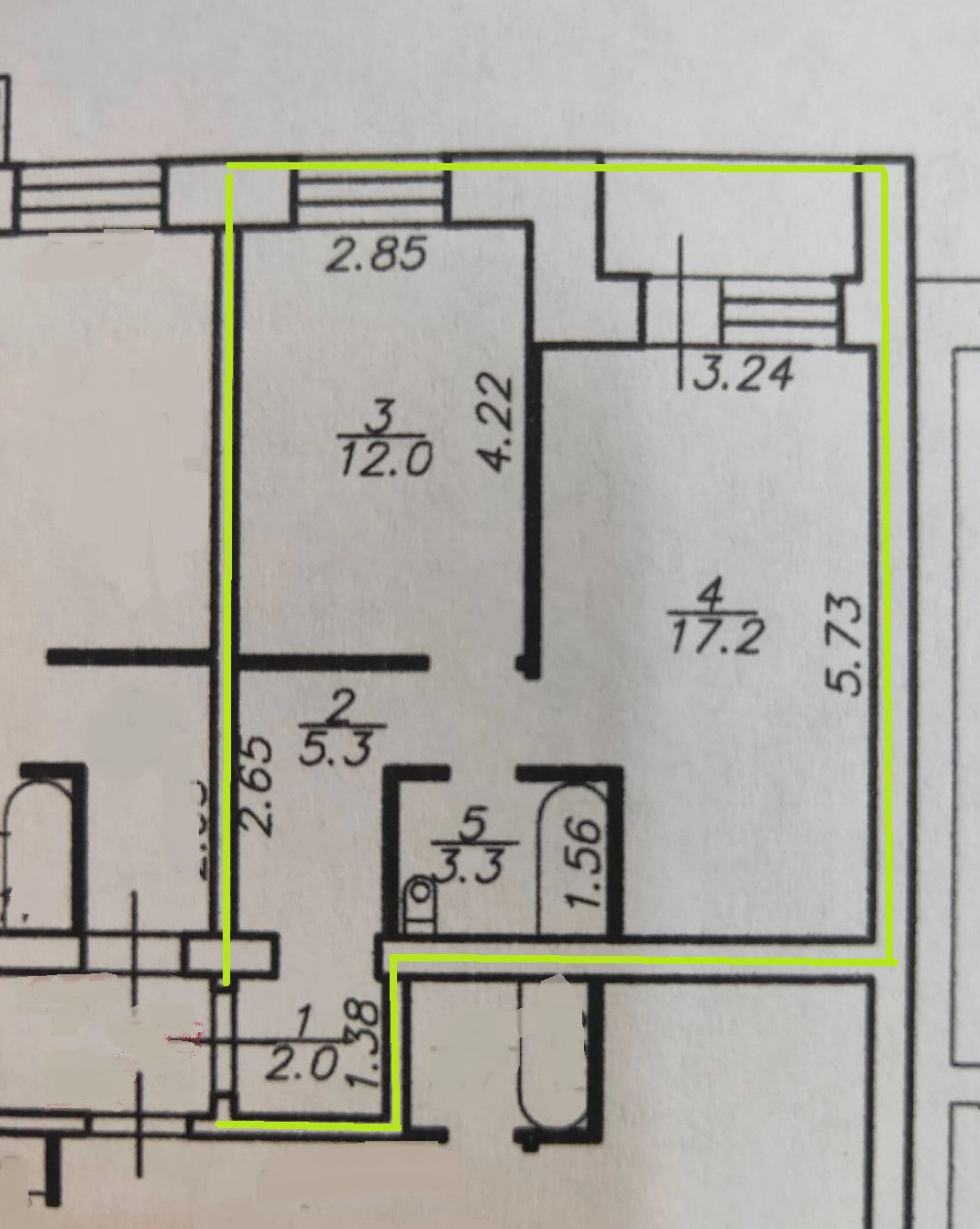 Площадь кухни 17.2 м2
