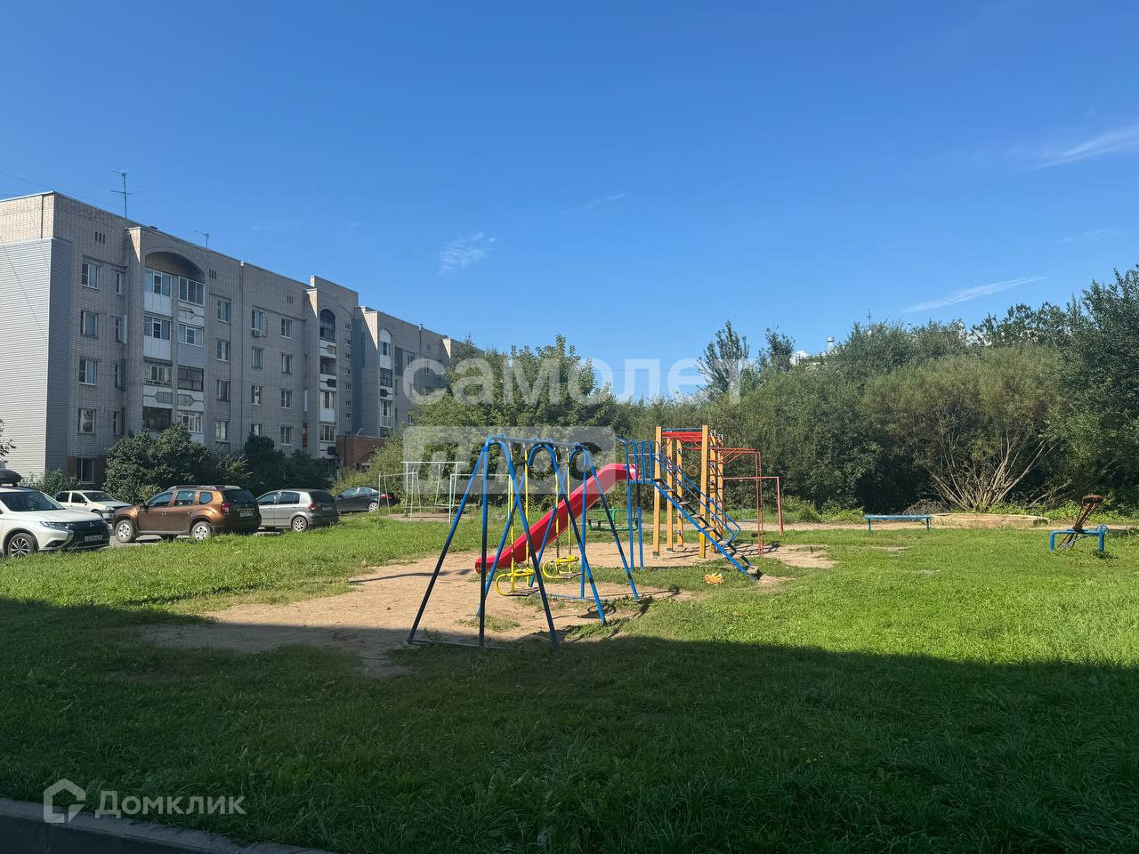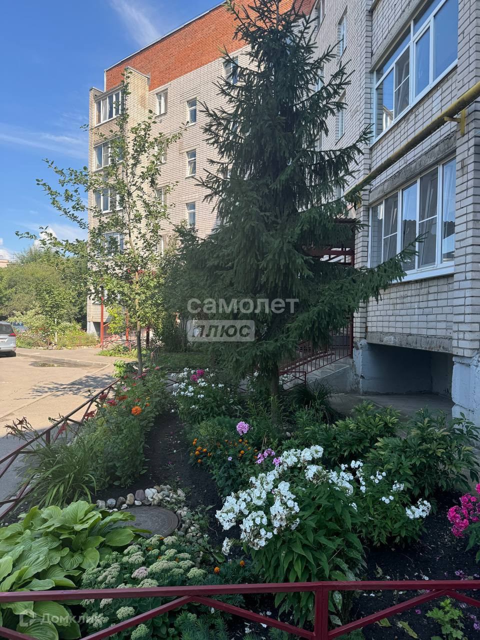Дом находится в дали от шумных улиц, окружен зеленью и детскими площадками.