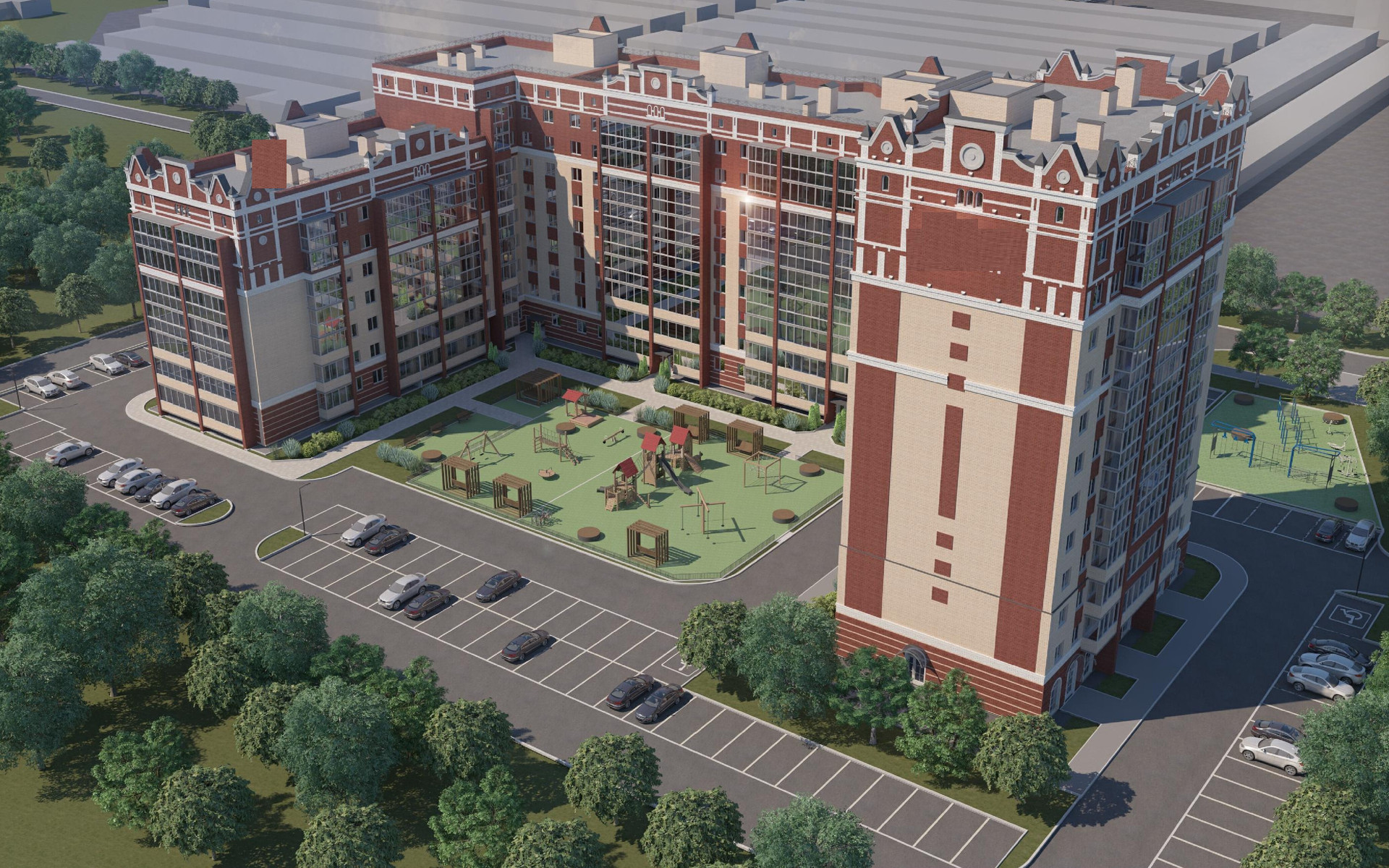 В доме предусматривается два лифта – грузовой и грузопассажирский, которые поднимают с НУЛЕВОГО ЭТАЖА .Так же на первом этаже предусмотрена колясочная. Интересным архитектурным элементом дома являются двухметровые часы с подсветкой, которые будут установлены на торцевом и центральном фасаде дома. Так же подсветка будет установлена в верхней части дома по всему периметру .Концепция дома «Двор без машин». Парковочные места сделаны вокруг дома.