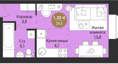 Общая площадь 29.5 м2